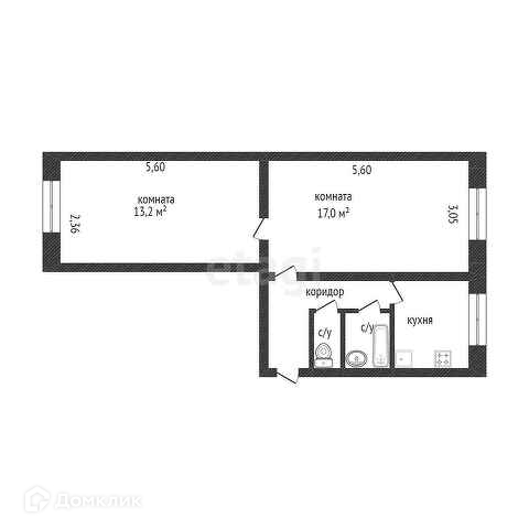 2-комнатная квартира, 42.2 м2, этаж 2 / 2, на продажу в Калуге, Новая улица, 9