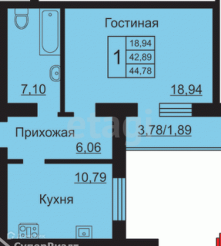 Жилая площадь 18.94 м2