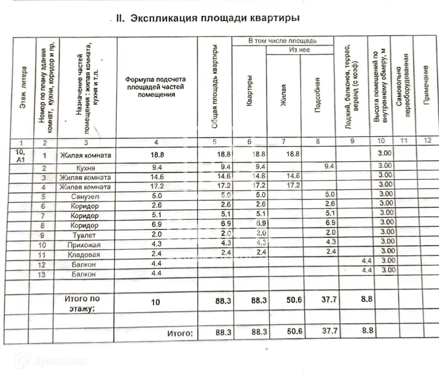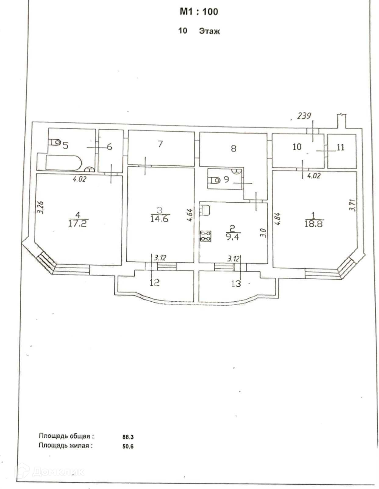 Общая площадь - 88,3 кв.м. Три изолированные комнаты: 17,2; 18,8; 14,6 кв.м., кухня - 9,4 кв.м., два санузла, гардеробная, два остекленных балкона, просторный коридор.