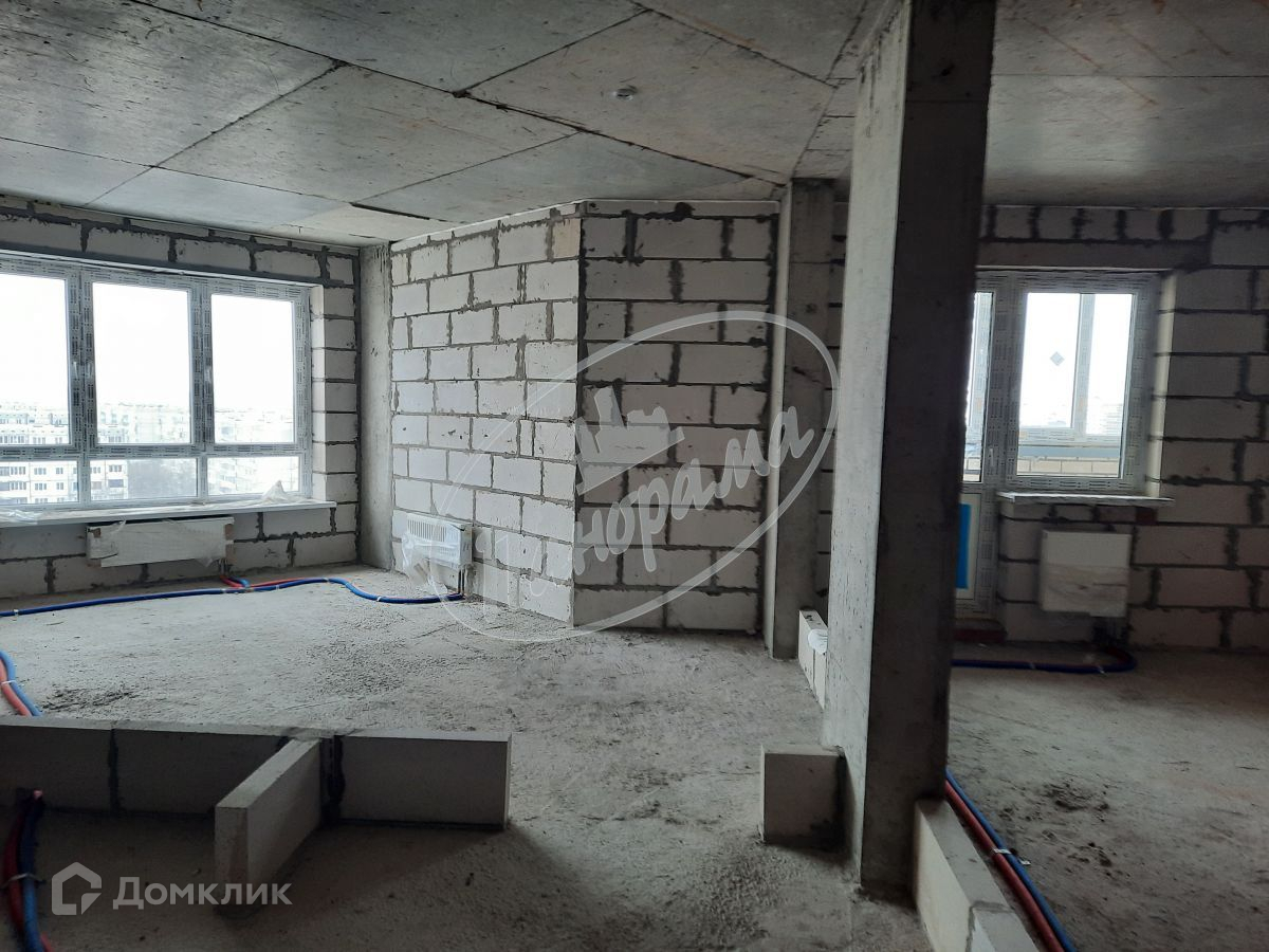 Квартира свободной планировки без отделки: выполнены перегородки санузла, установлена входная дверь, электрощит в прихожей, смонтировано отопление с установкой радиаторов.