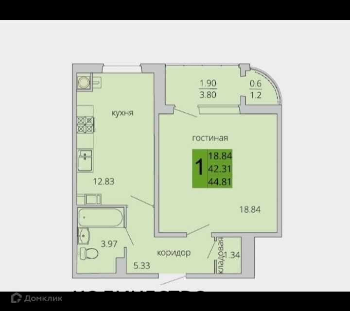 Количество комнат 1
