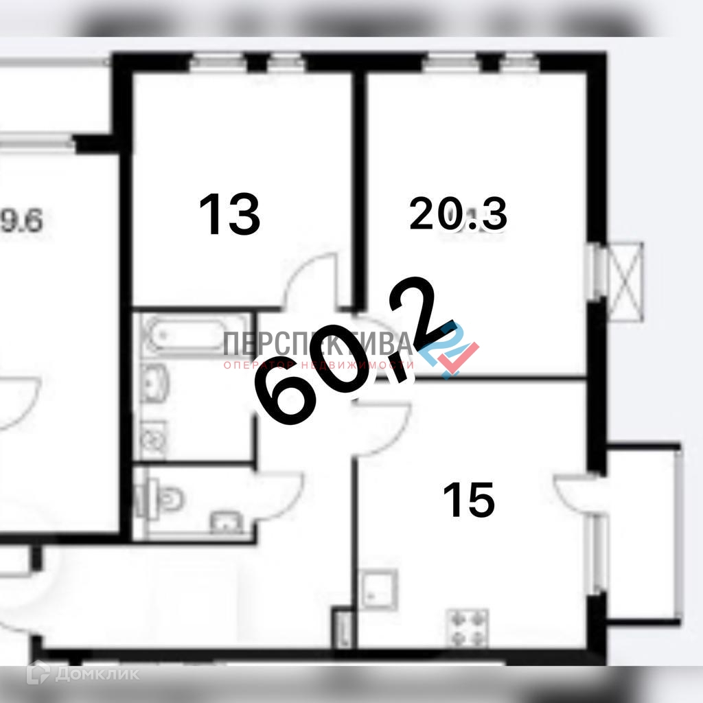 Квартира в хорошем состоянии, общая площадь - 60.2 кв.м.