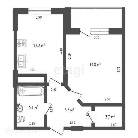 Общая площадь 44 м2