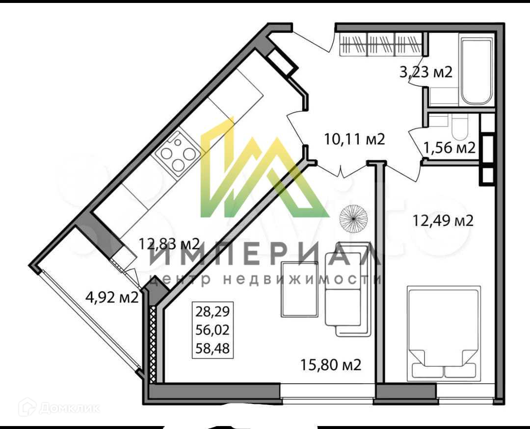 Общая площадь 58 м2