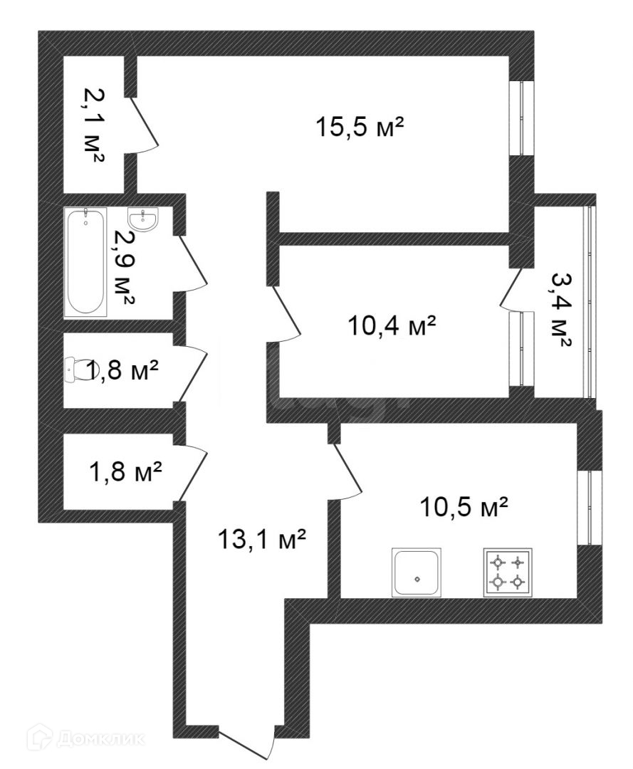 Жилая площадь 25.9 м2