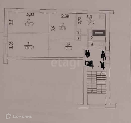 Общая площадь 57.9 м2