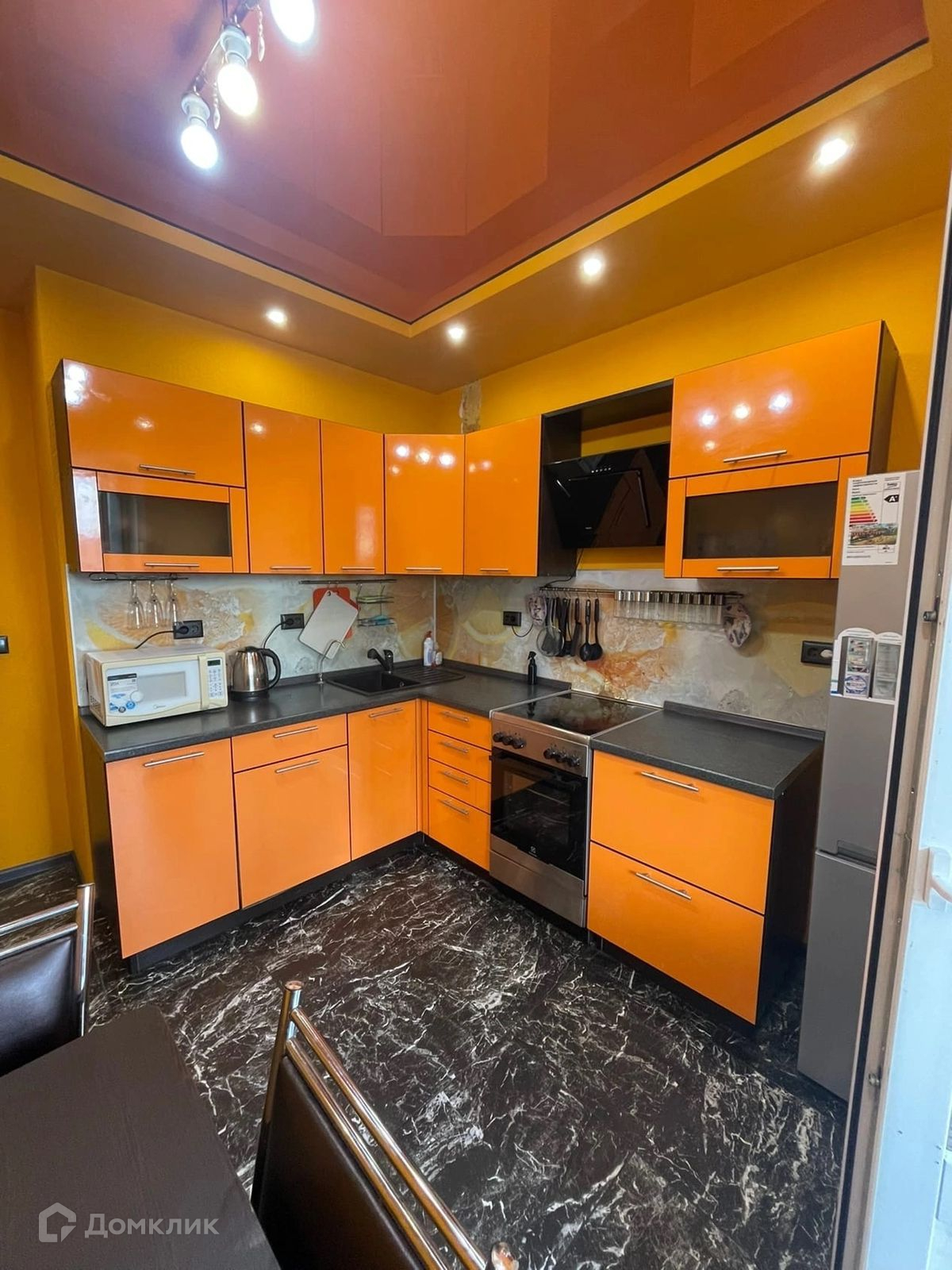 Площадь кухни составляет 10.5 квадратных метров, в которых удачно размещена вся необходимая бытовая техника. Просторная кухня позволит вам с легкостью готовить свои любимые блюда и угощать близких и друзей.