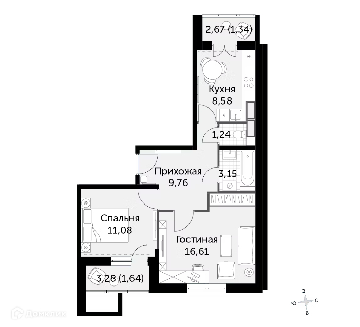 Жилая площадь 29 м2