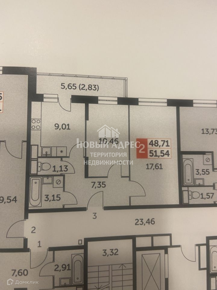 Общая площадь 51.5 м2