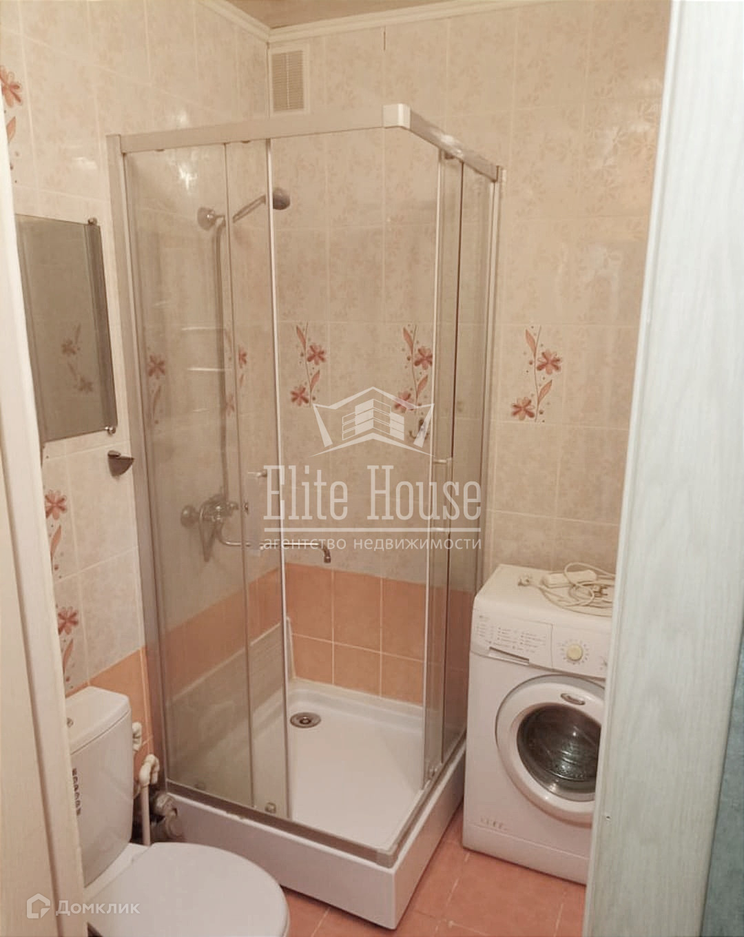 ·        Санузел совмещенный, в кафельной плитке. В нем вместились и душевая кабина, и стиральная машинка. Очень удобно хозяйке).