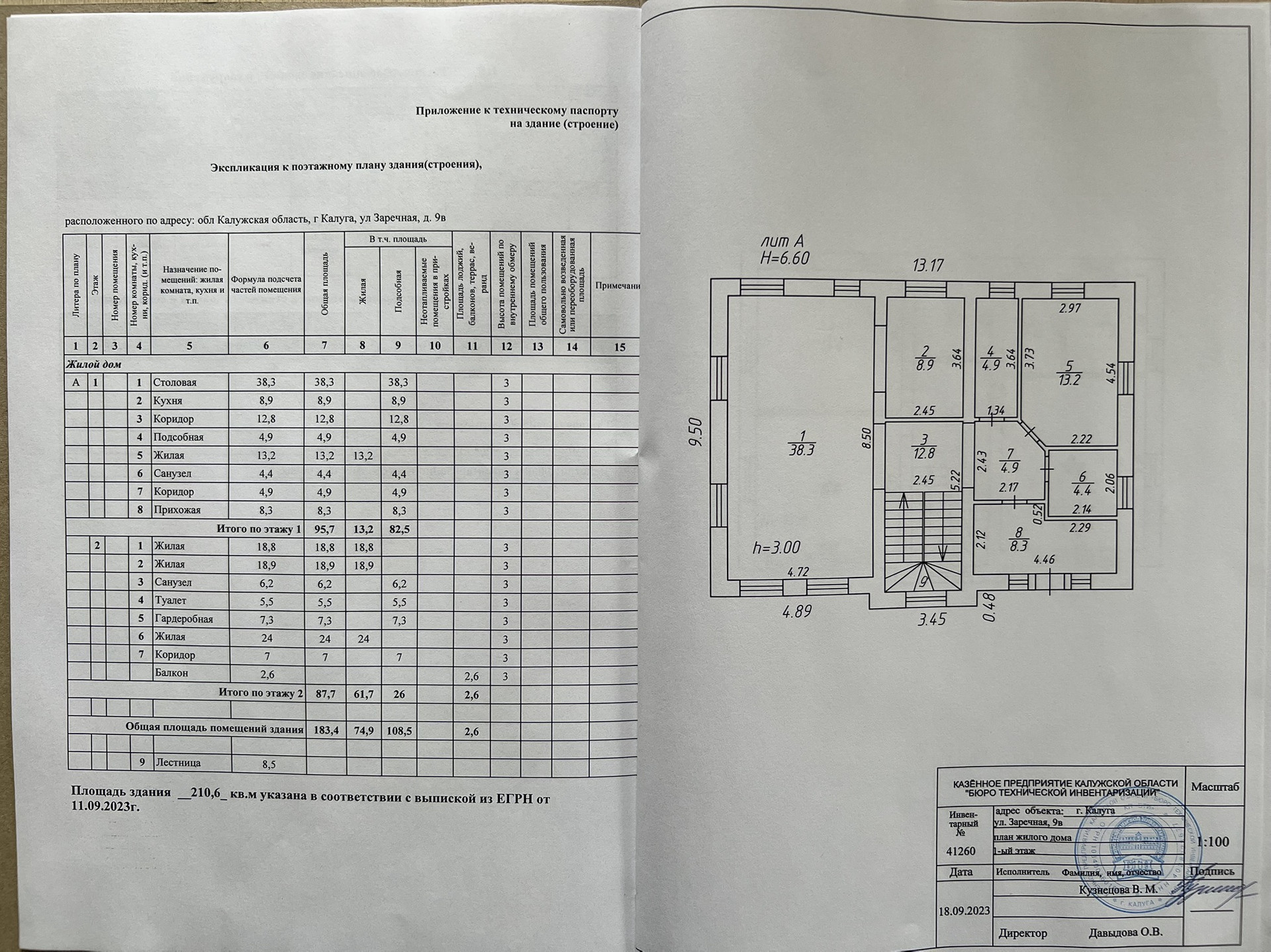 4-комнатная квартира, 210.6 м2, этаж 2 / 2, на продажу в Калуге, Заречная улица, 9В