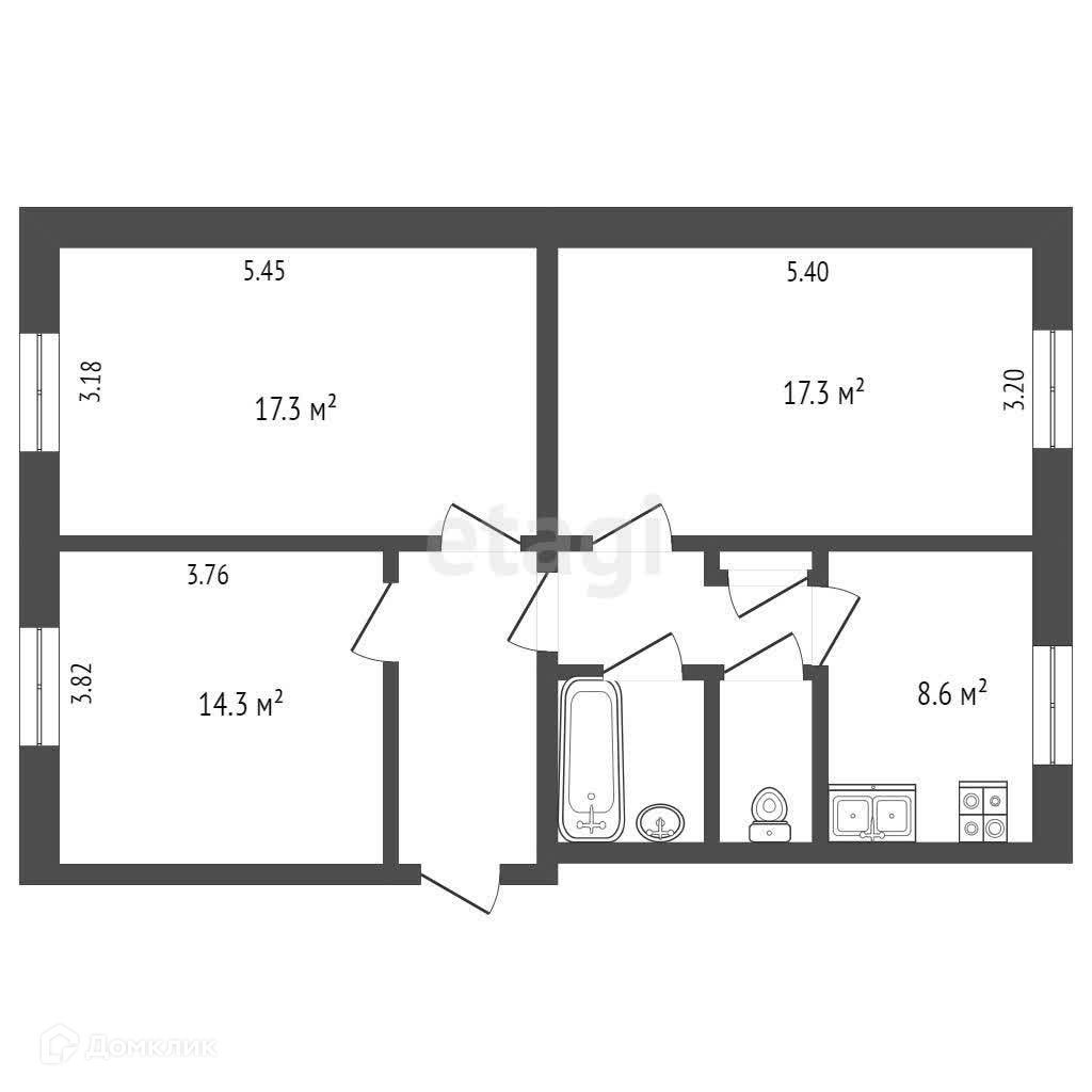 Общая площадь 46.4 м2