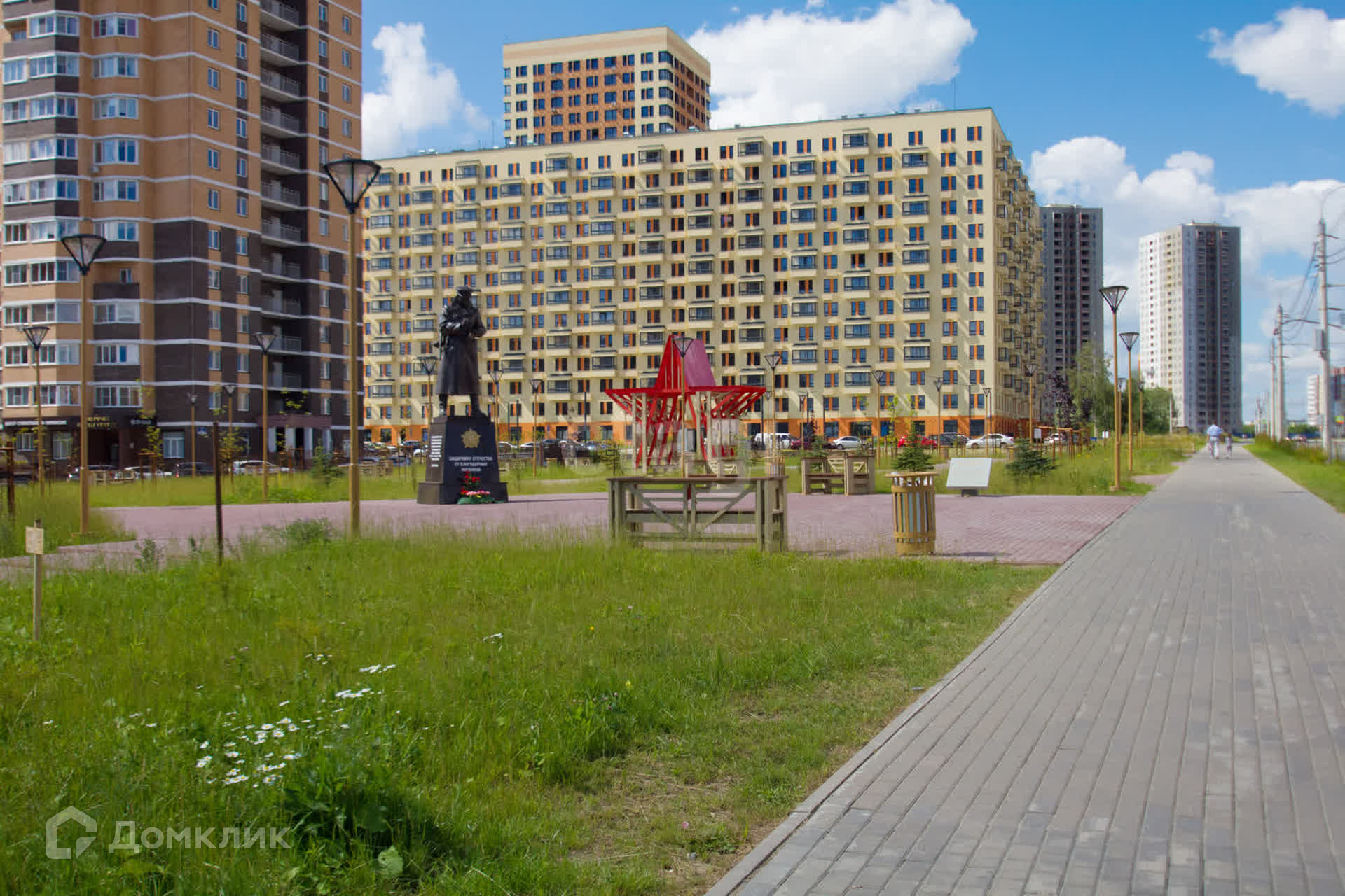 Во дворе оборудованная детская площадка.