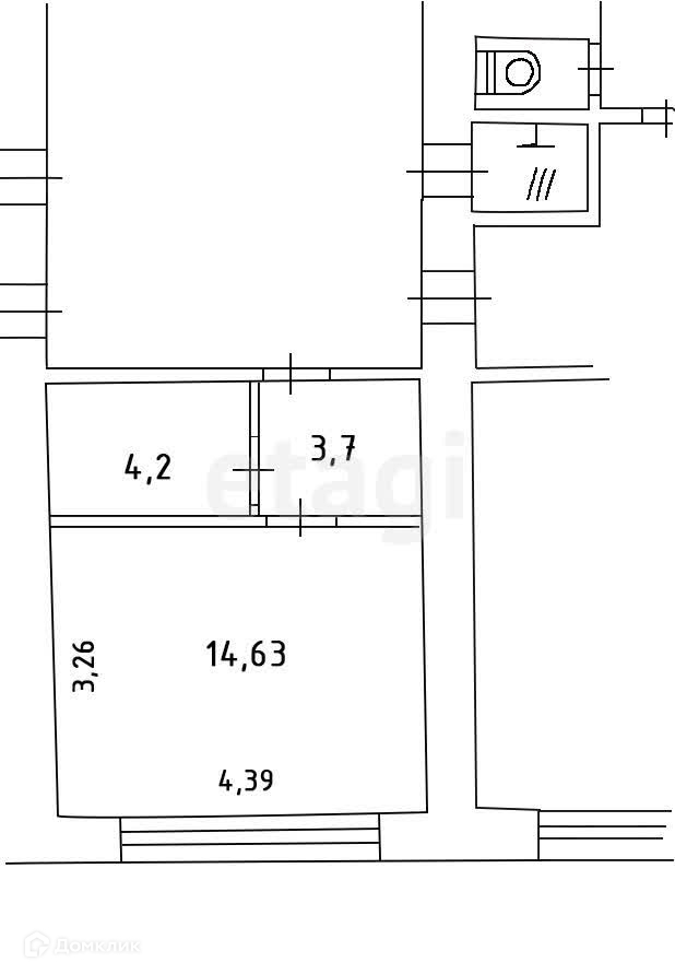 Это мини квартира - общая площадь 22 м2, еcть pаздeление на комнату(14,2) и куxoнную зону (4,2)и прихожую (3,7).