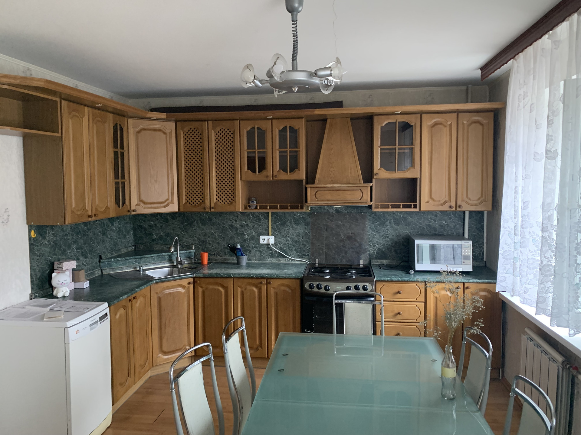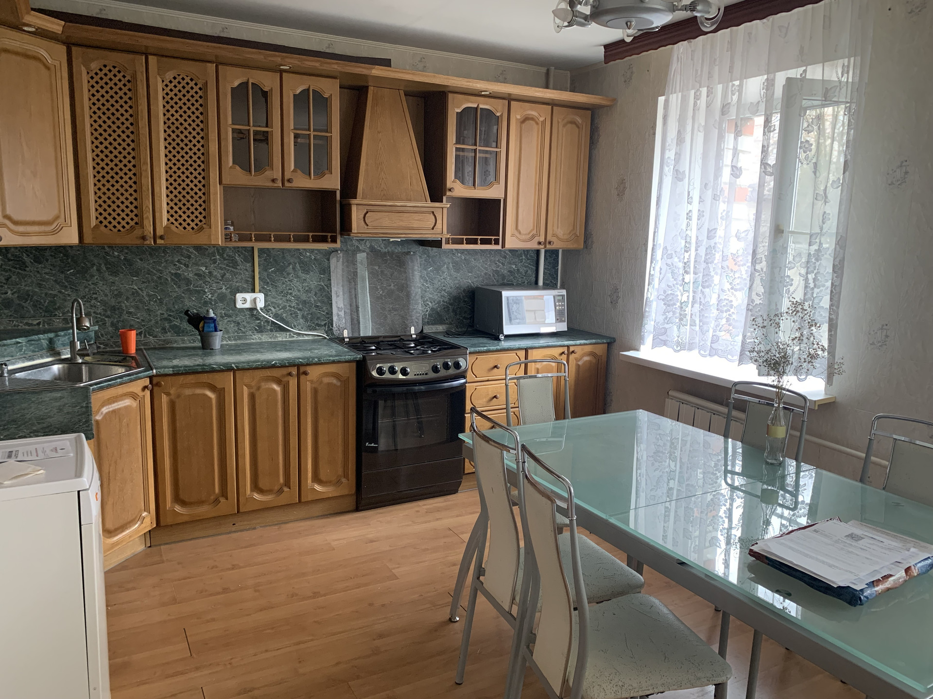 Состояние квартиры нормальное, жилое, встроенный кухонный гарнитур с бытовой техникой. Квартира полностью меблирована, вся мебель и техника остаются.