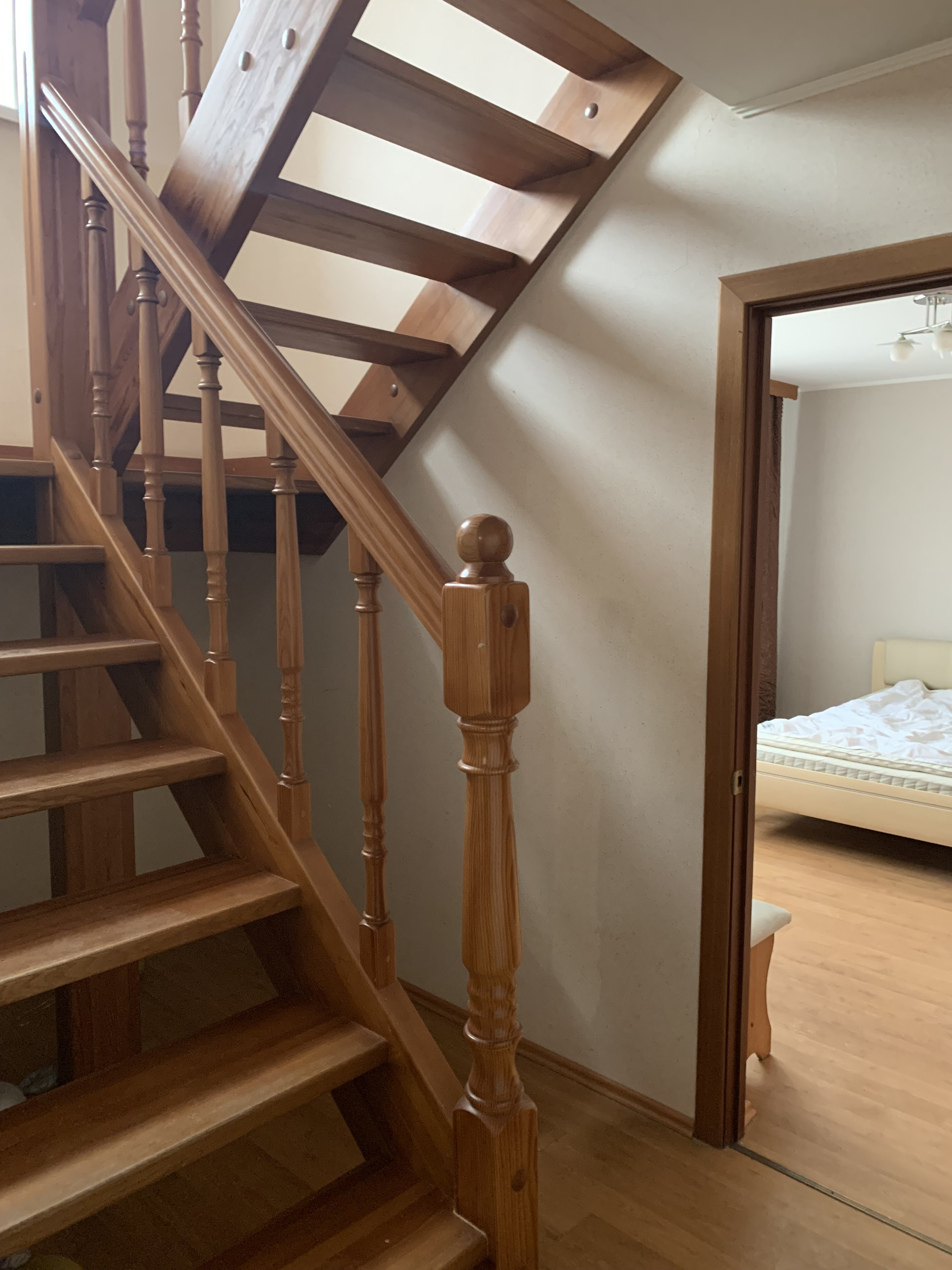 Квартира расположена в 2-х уровнях, имеет просторную лоджию, раздельный санузел, гардеробную, все комнаты изолированные, одна из жилых комнат находится на втором уровне, деревянная лестница. Г/х водоснабжение, центральное отопление.