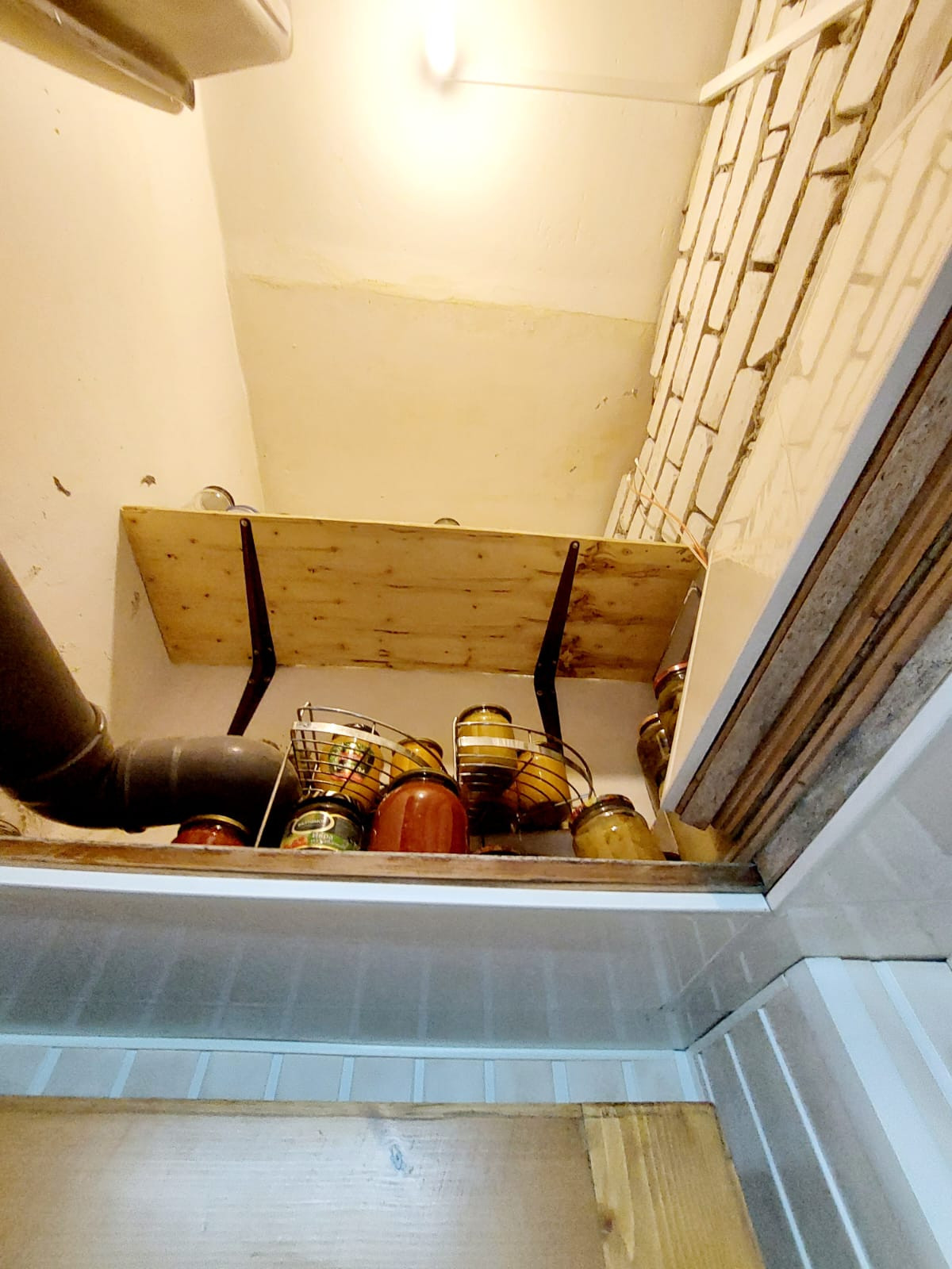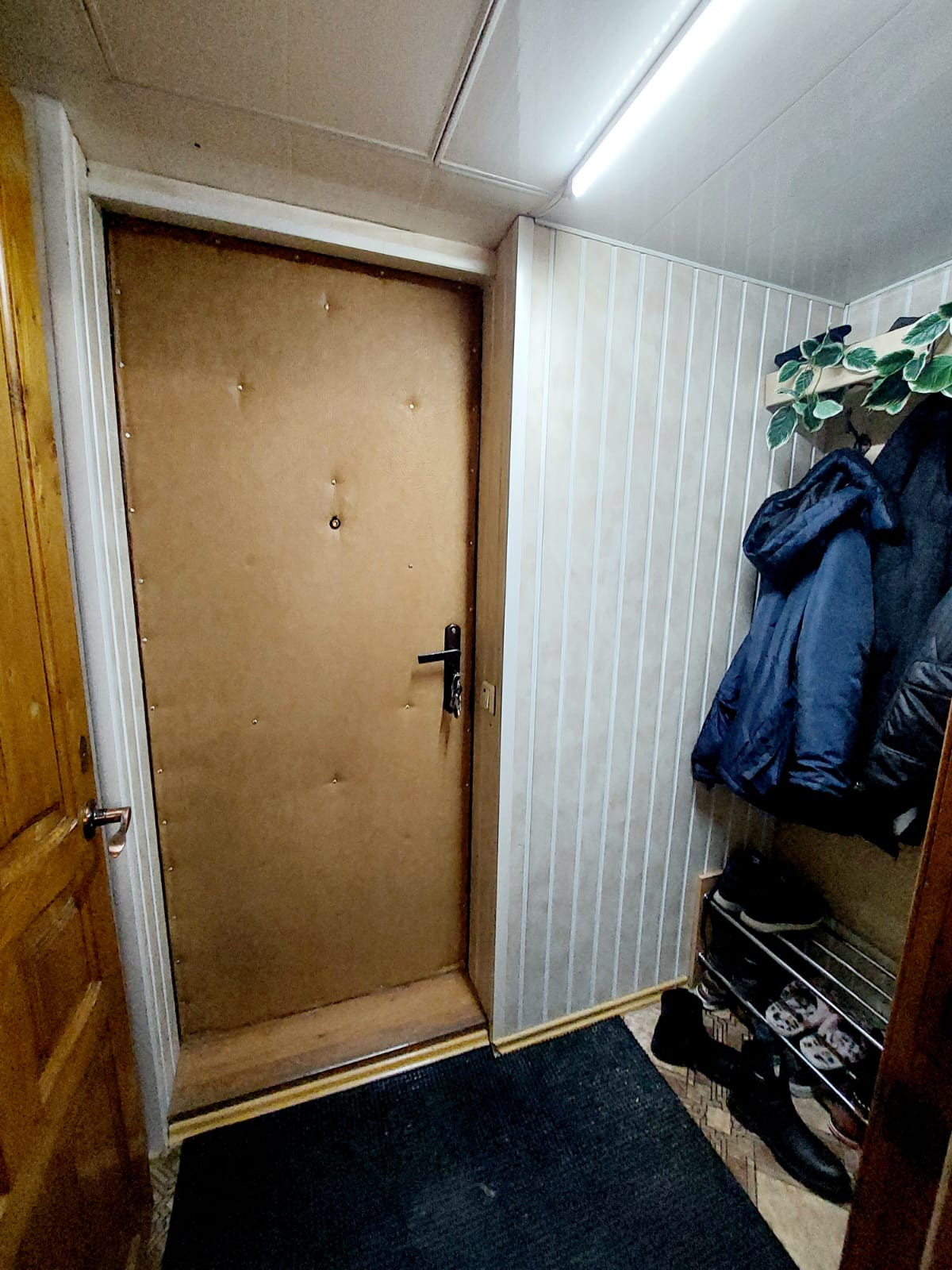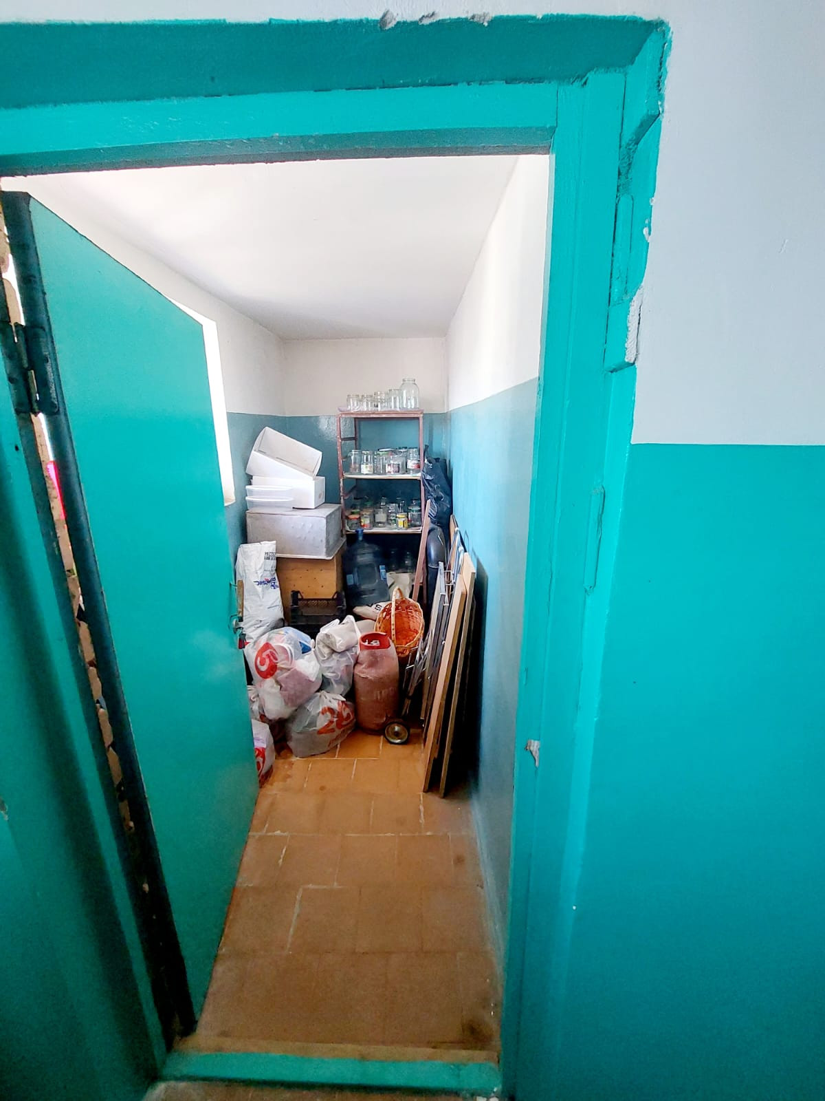 При входе в квартиру тамбур с антресолью в потолке в котором хранится консервация и многое другое!