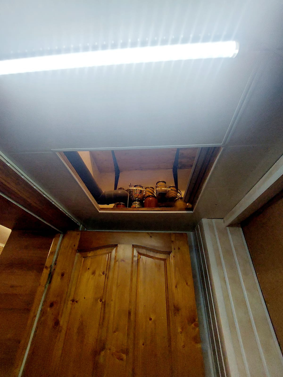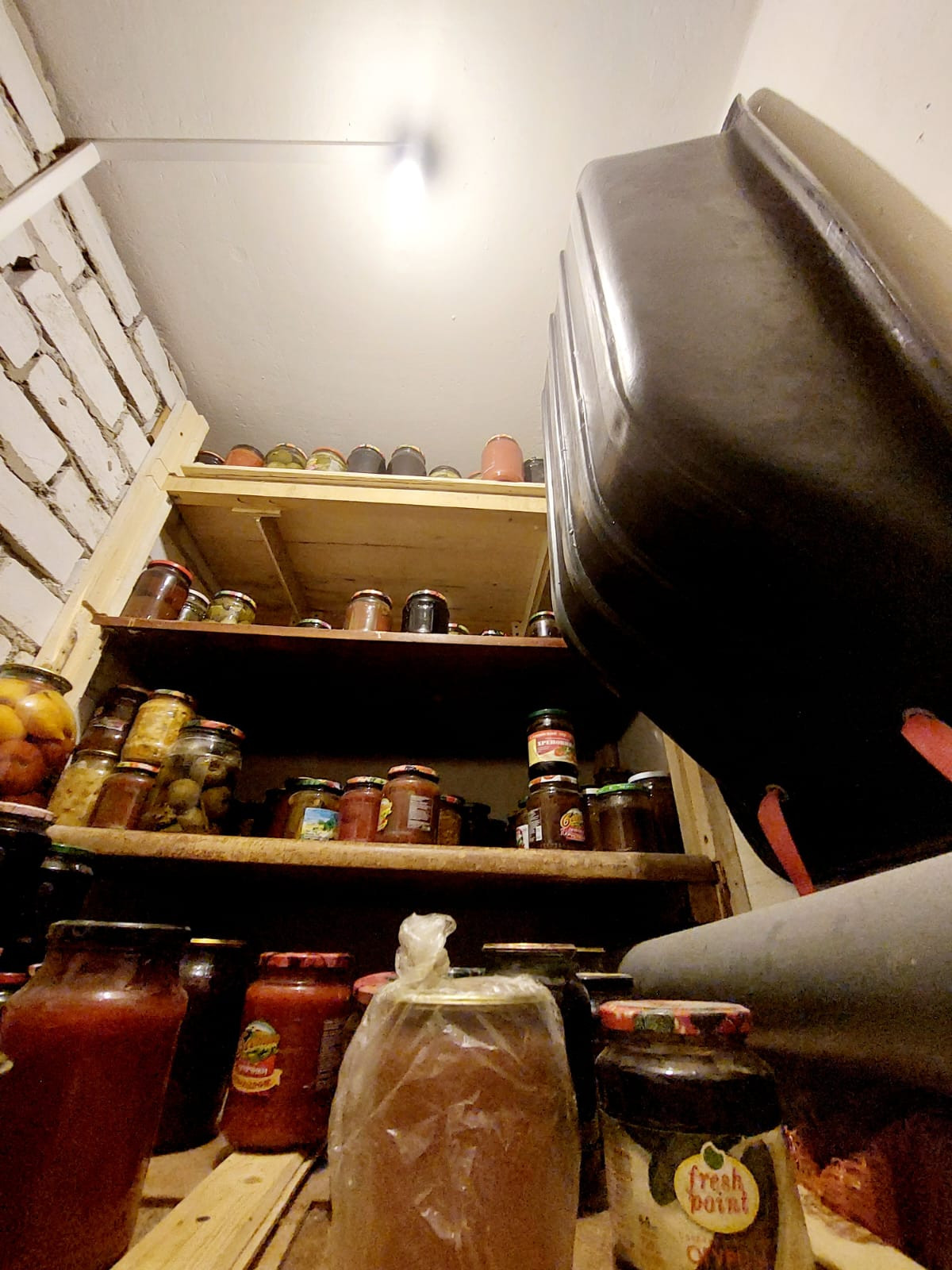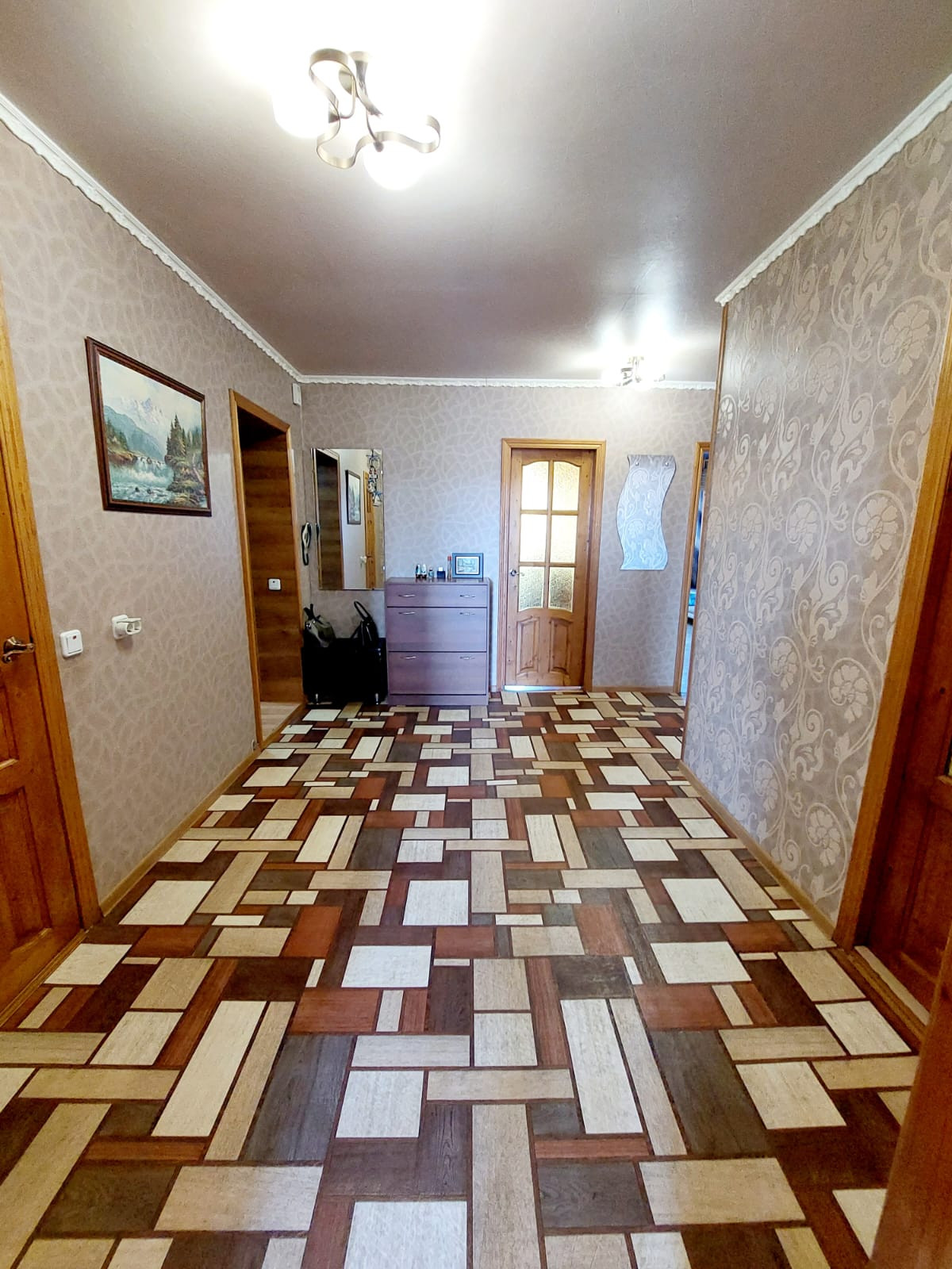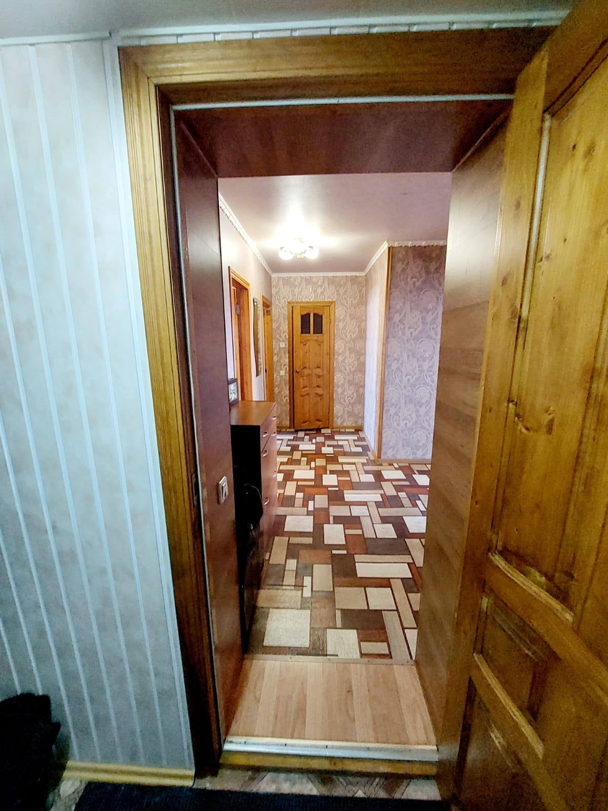 При входе в квартиру тамбур с антресолью в потолке в котором хранится консервация и многое другое!