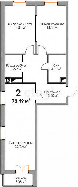 Общая площадь 78.19 м2