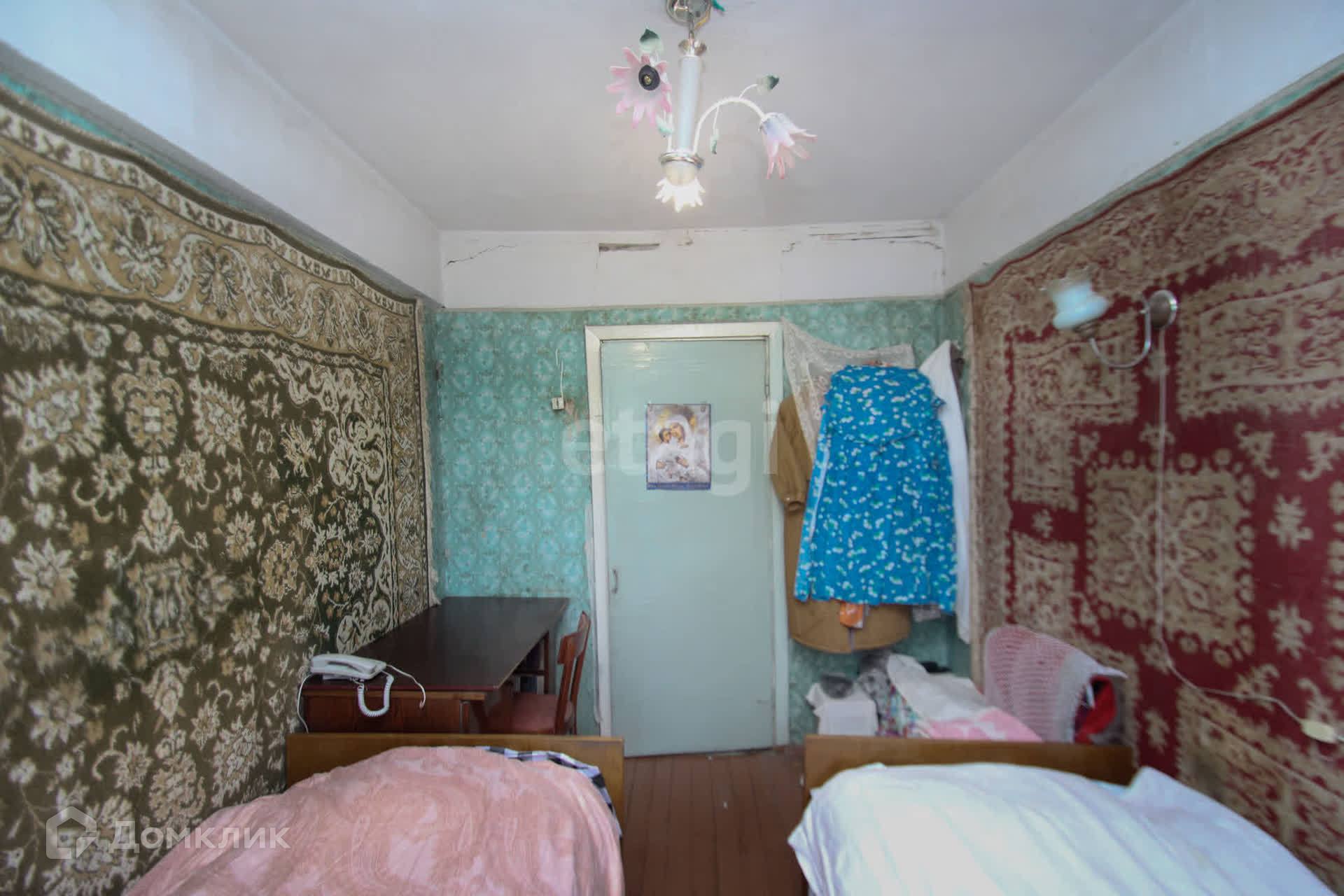 Квартира находится в кирпичном доме, построенном в 1970 году. В ней выполнен косметический ремонт, установлены металлические двери. В квартире две комнаты, одна из которых является гостиной, а вторая — спальней. Балкон застеклён.