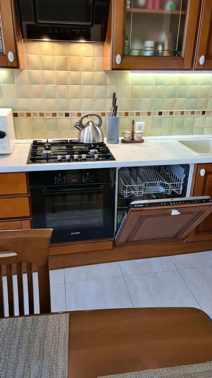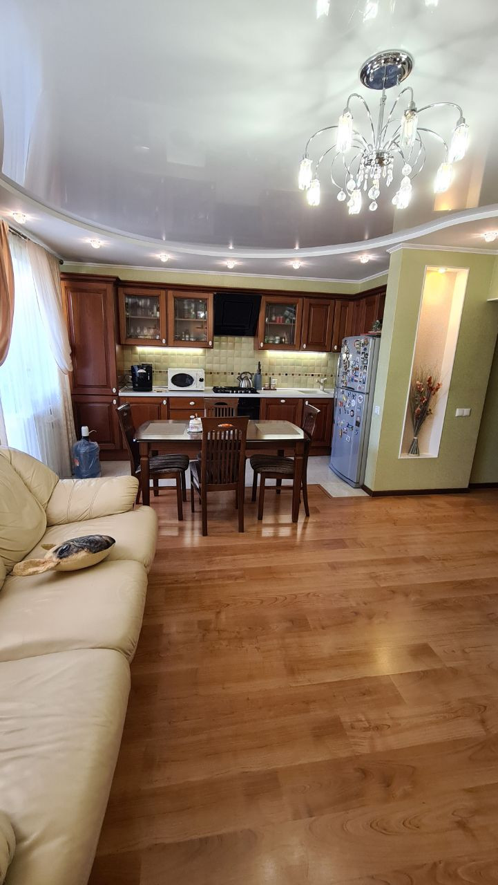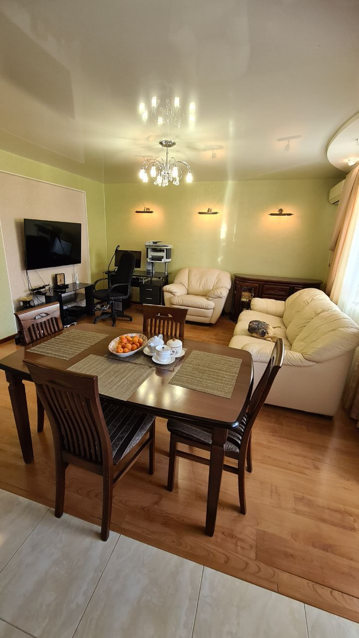 Квартира с индивидуальным отоплением, с просторной кухней-гостиной площадью 26,5 кв.м (переделана из 3-х комнатной квартиры), две жилые комнаты 19,5 кв.м и 12,6 кв.м, раздельный санузел, встроенные шкафы купе, просторная застекленная лоджия 6,2 кв.м.
