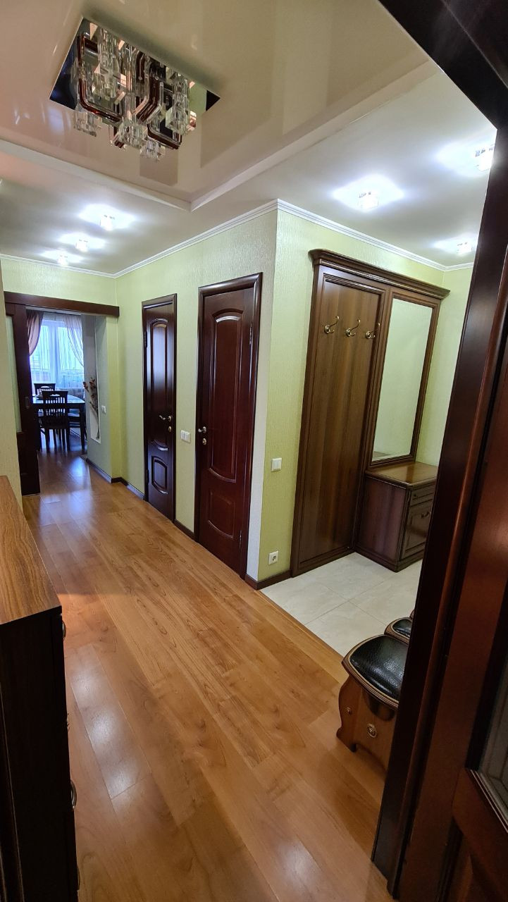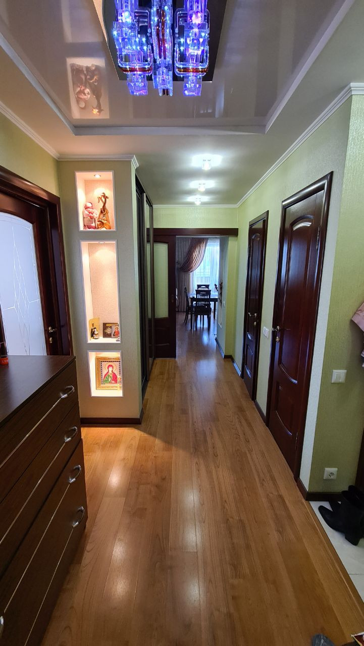 В квартире произведен дорогой дизайнерский ремонт, встроенный кухонный гарнитур с бытовой техникой, сантехнические и световые приборы, шторы и гардины, на окнах стеклопакеты.