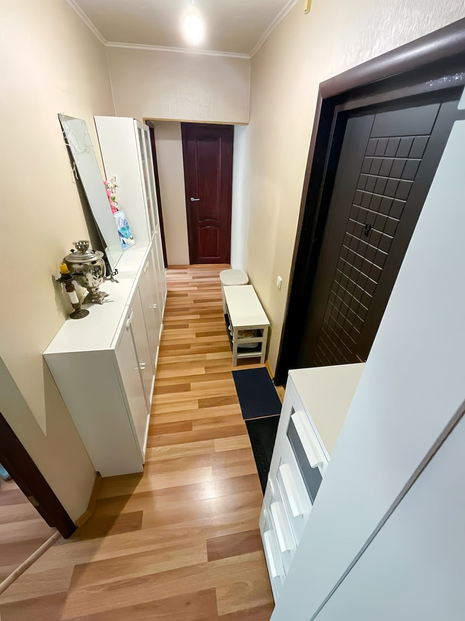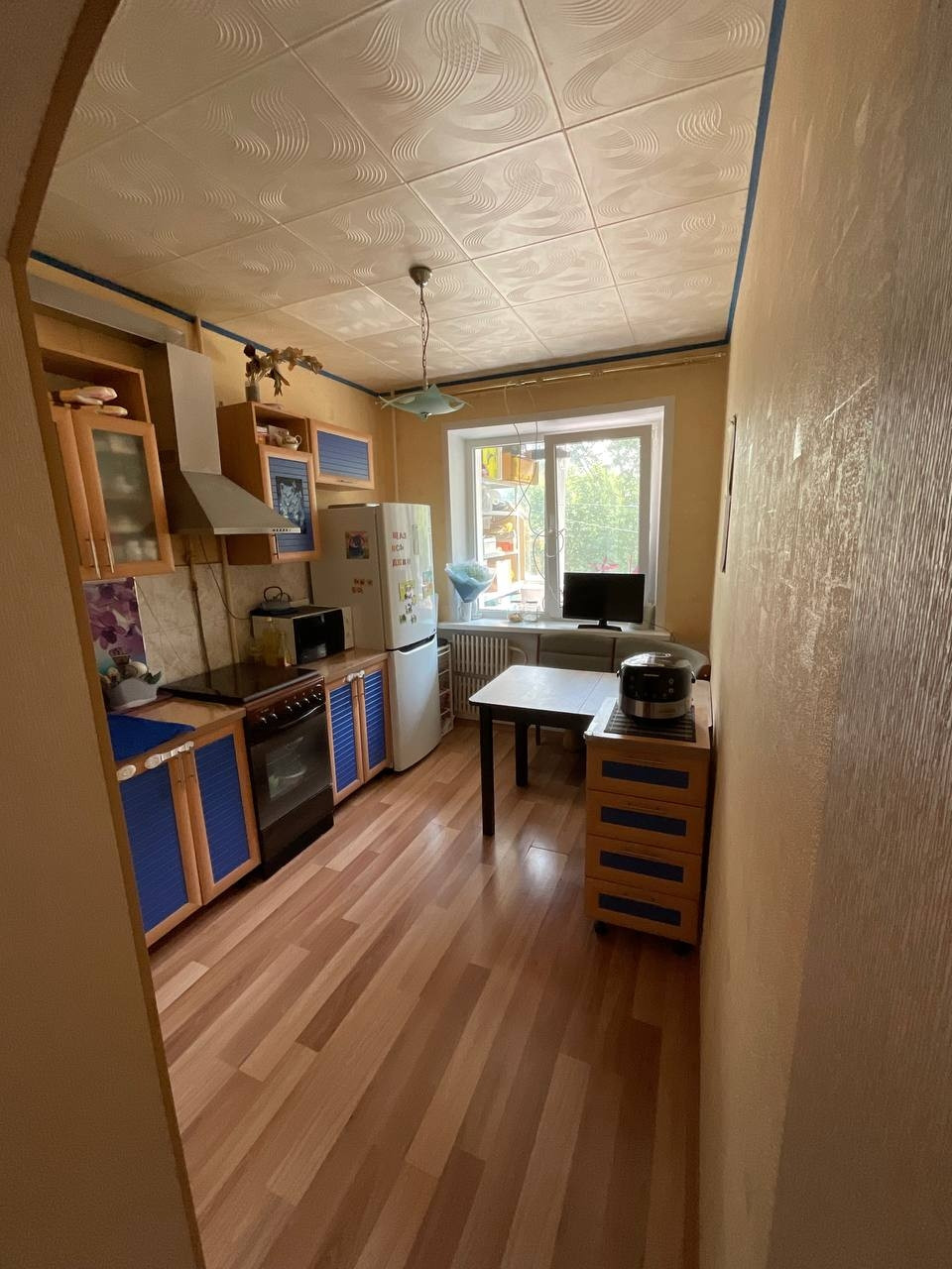 Квартира в хорошем жилом состоянии. Похорошему сделать косметический ремонт, но можно без дискомфорта заезжать сразу так. (не бабушкина). Ламинат по всей квартире, обои.