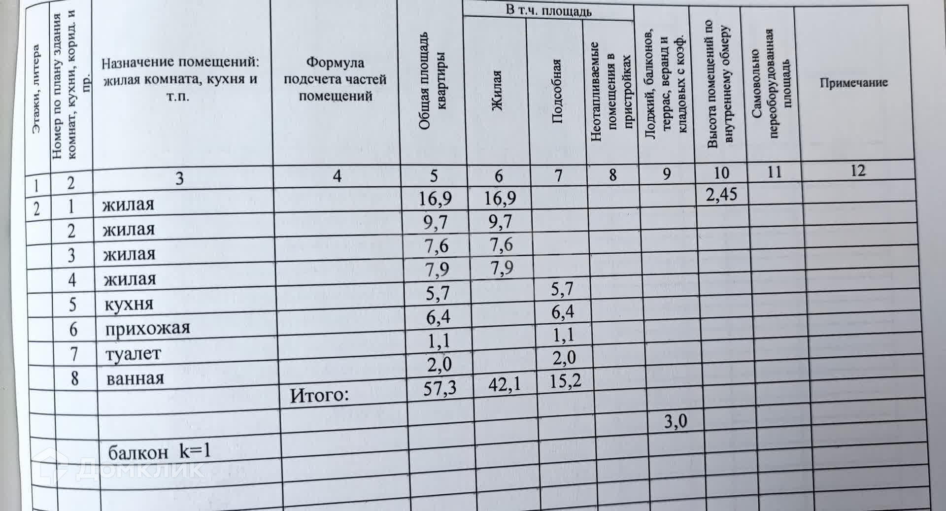 Общая площадь 57.3 м2