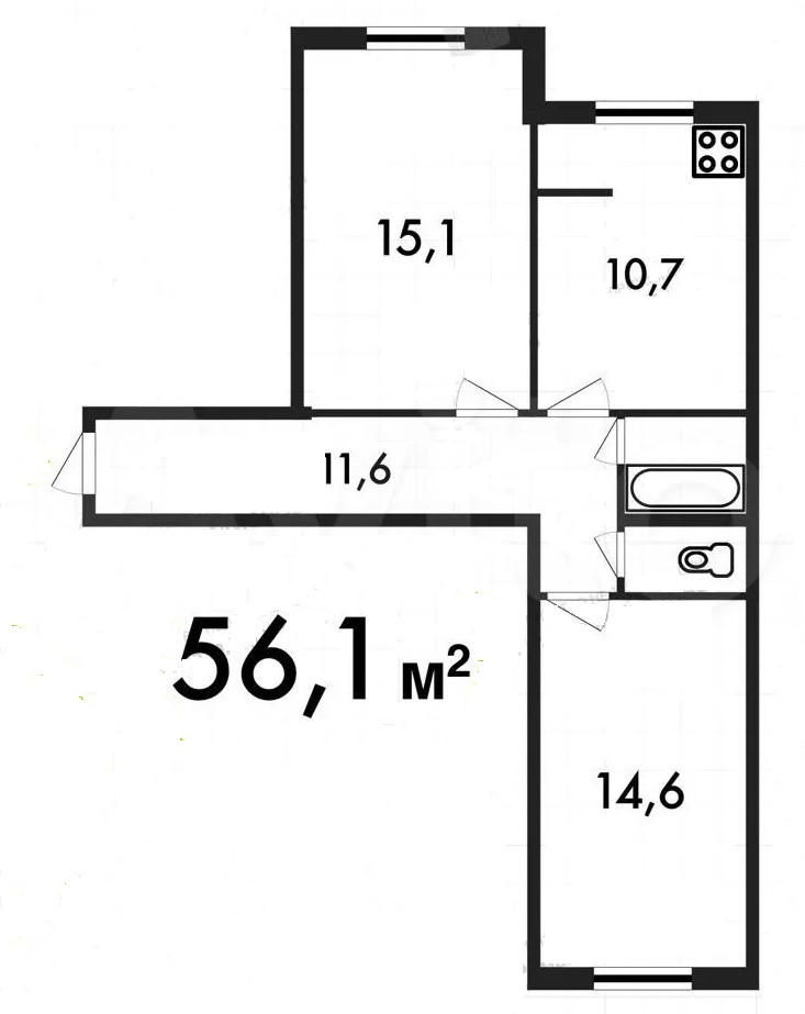 Общая площадь 56.1 м2