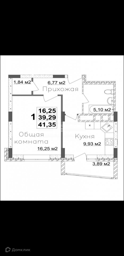 Общая площадь 41.35 м2