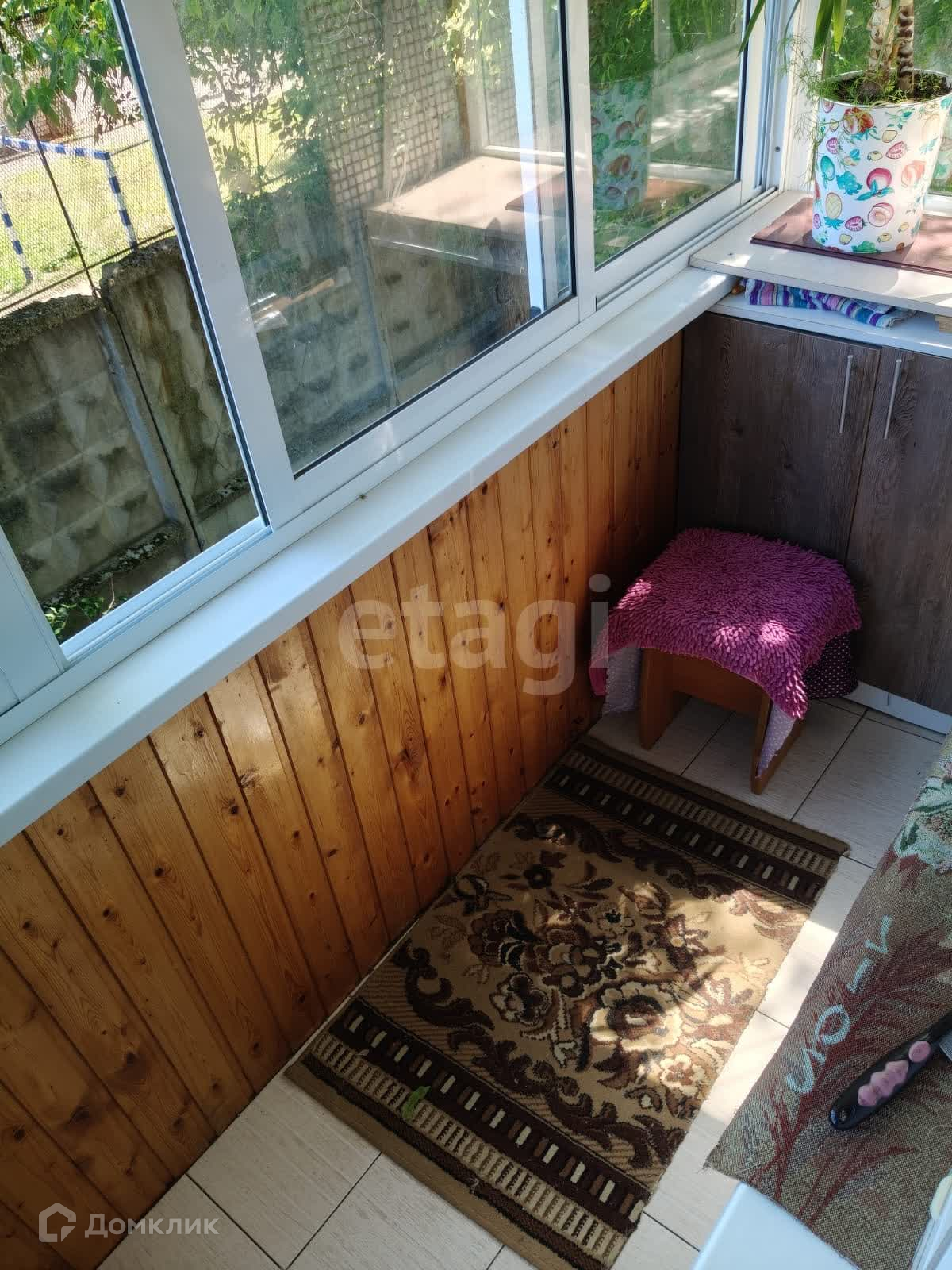 ◼балкон обшит вагонкой и застеклен