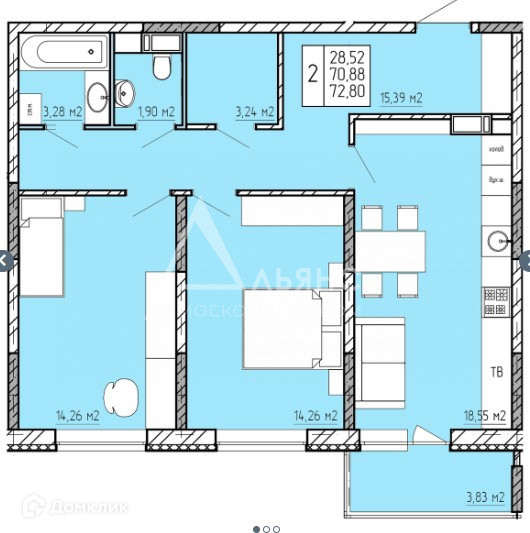 Общая площадь 72.8 м2