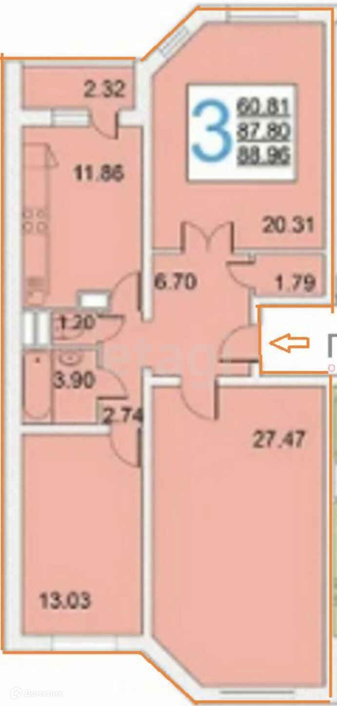 Общая площадь 87.8 м2