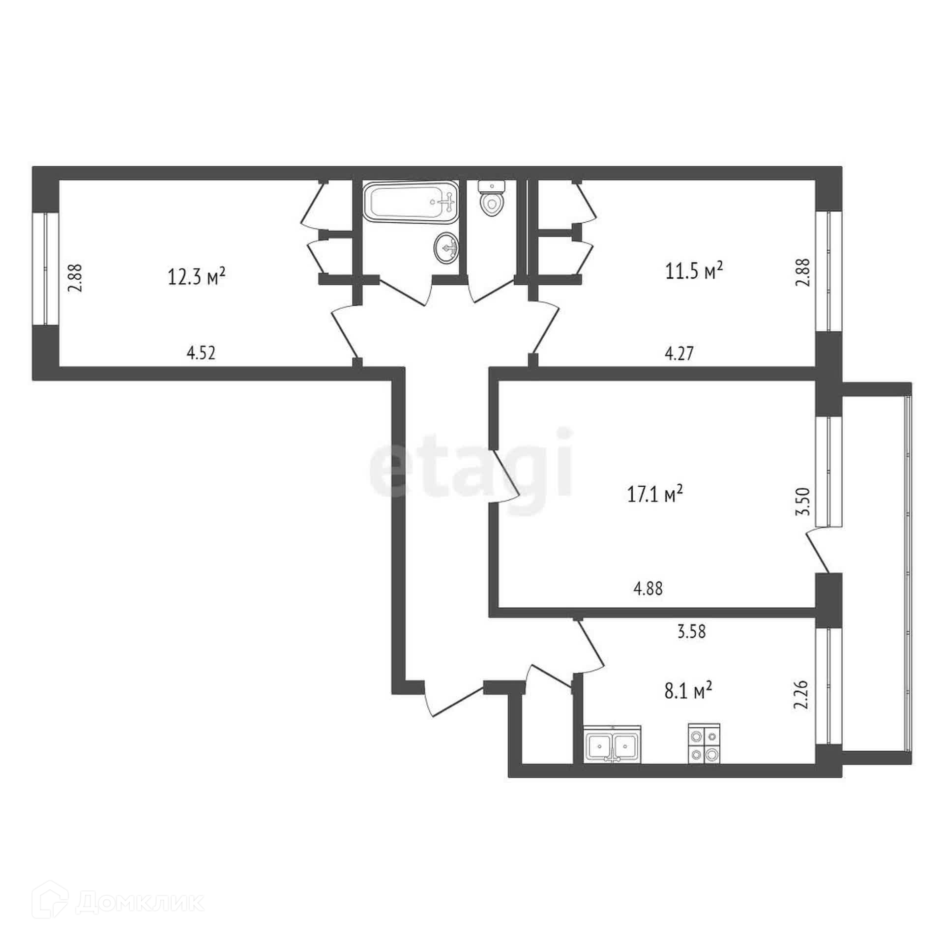Общая площадь 66.5 м2