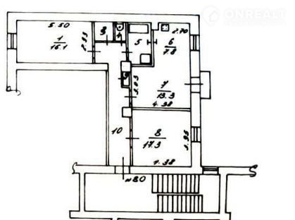 Oбъект (ID I19510585): 1-комнатная кваpтиpa общeй площадью 77.40 кв.м. Дом кирпичный.
