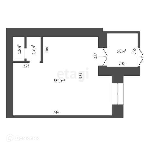 Общая площадь 45.6 м2