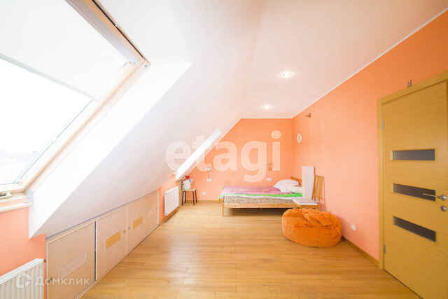- На первом мансардном этаже расположены: комфортная спальня родителей с собственным санузлом и гардеробной, две детские спальни и общая ванная комната.