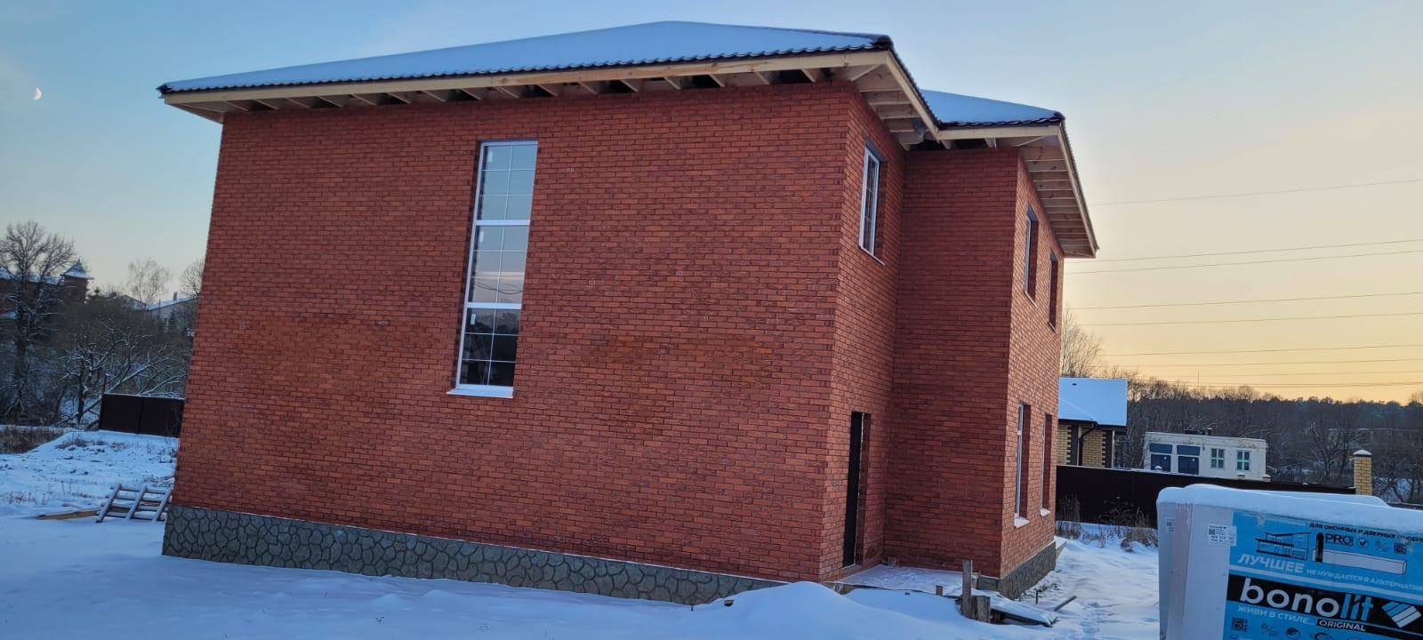 В продаже две готовых секции 145 м2 в таунхаусе на 2 семьи в черте города. Фундамент ленточный, ж/б перекрытия. Стены: газоблок (300), облицовка: кирпич.
