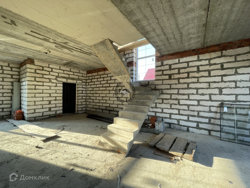 Дом построен из газоблока, фасад - облицовочный кирпич, лестница - монолитная, перекрытия - ж/б плиты.