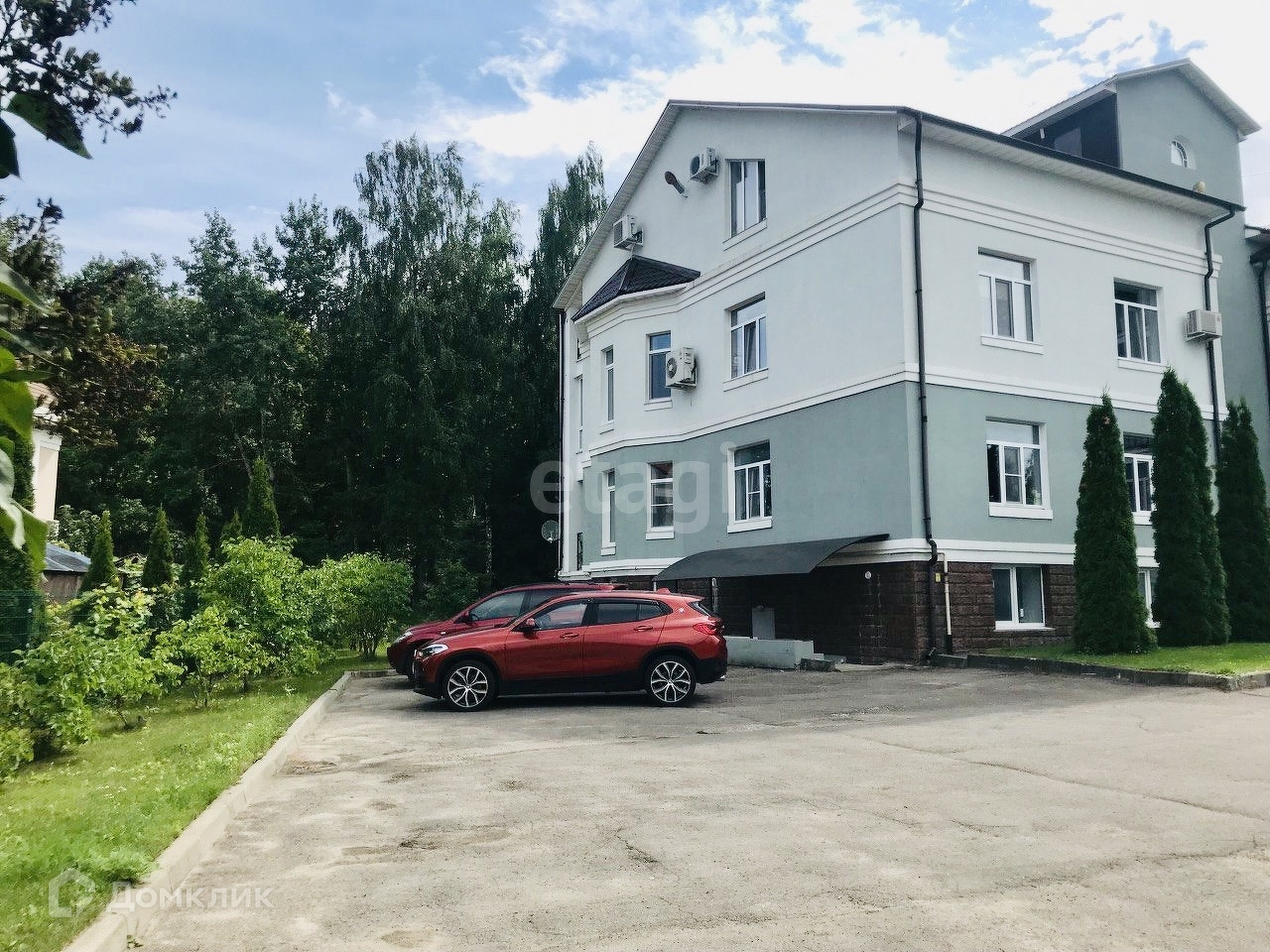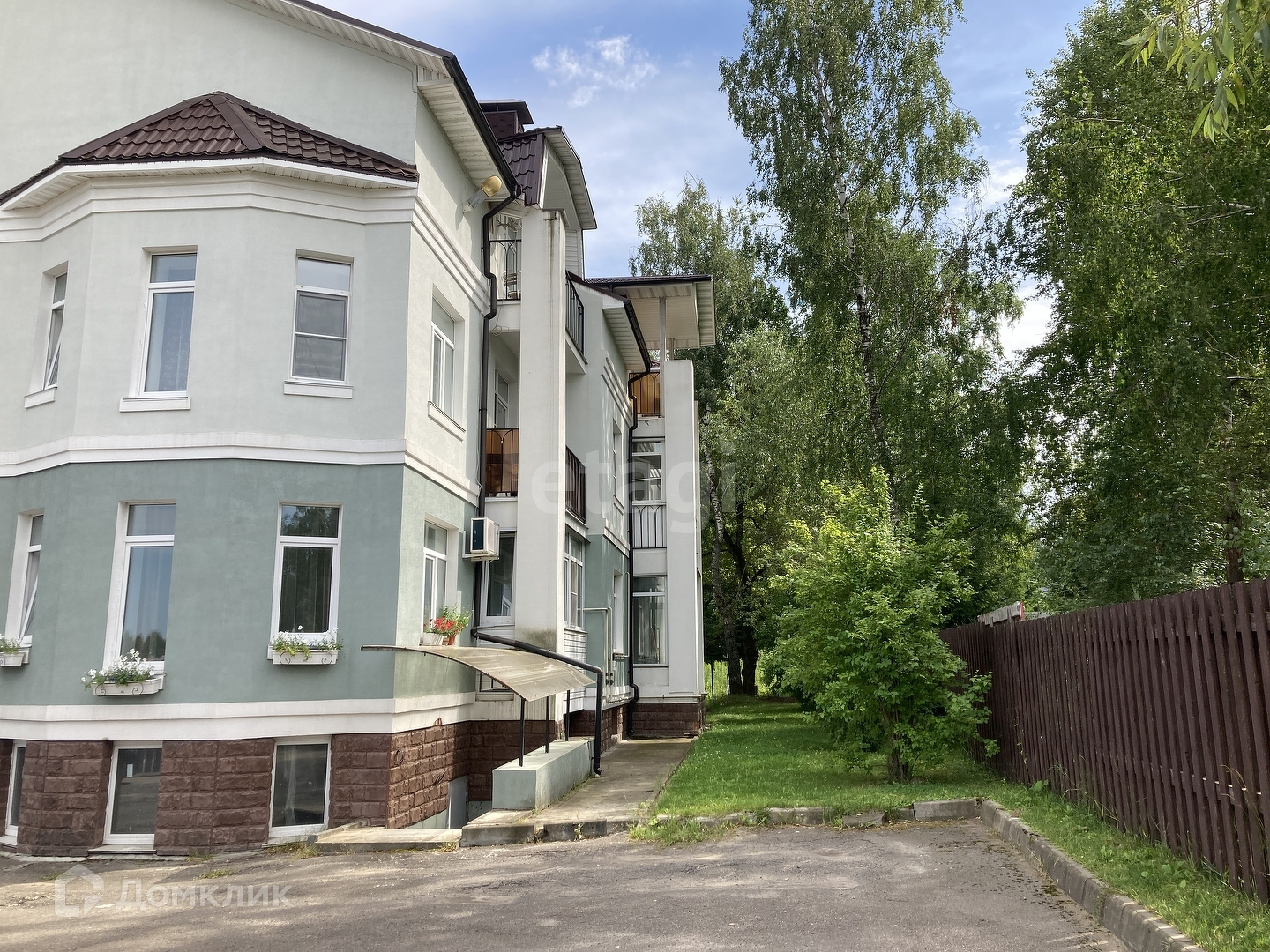 Большая благоустроенная закрытая территория, на воротах дистанционный пульт.