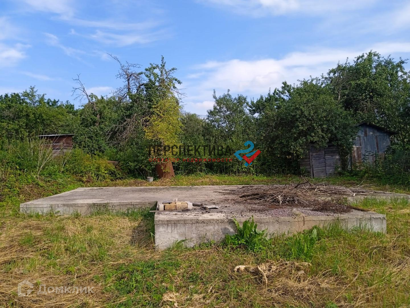 На участке готовый фундамент, под строительство дома. Газ, электричество, по границе.