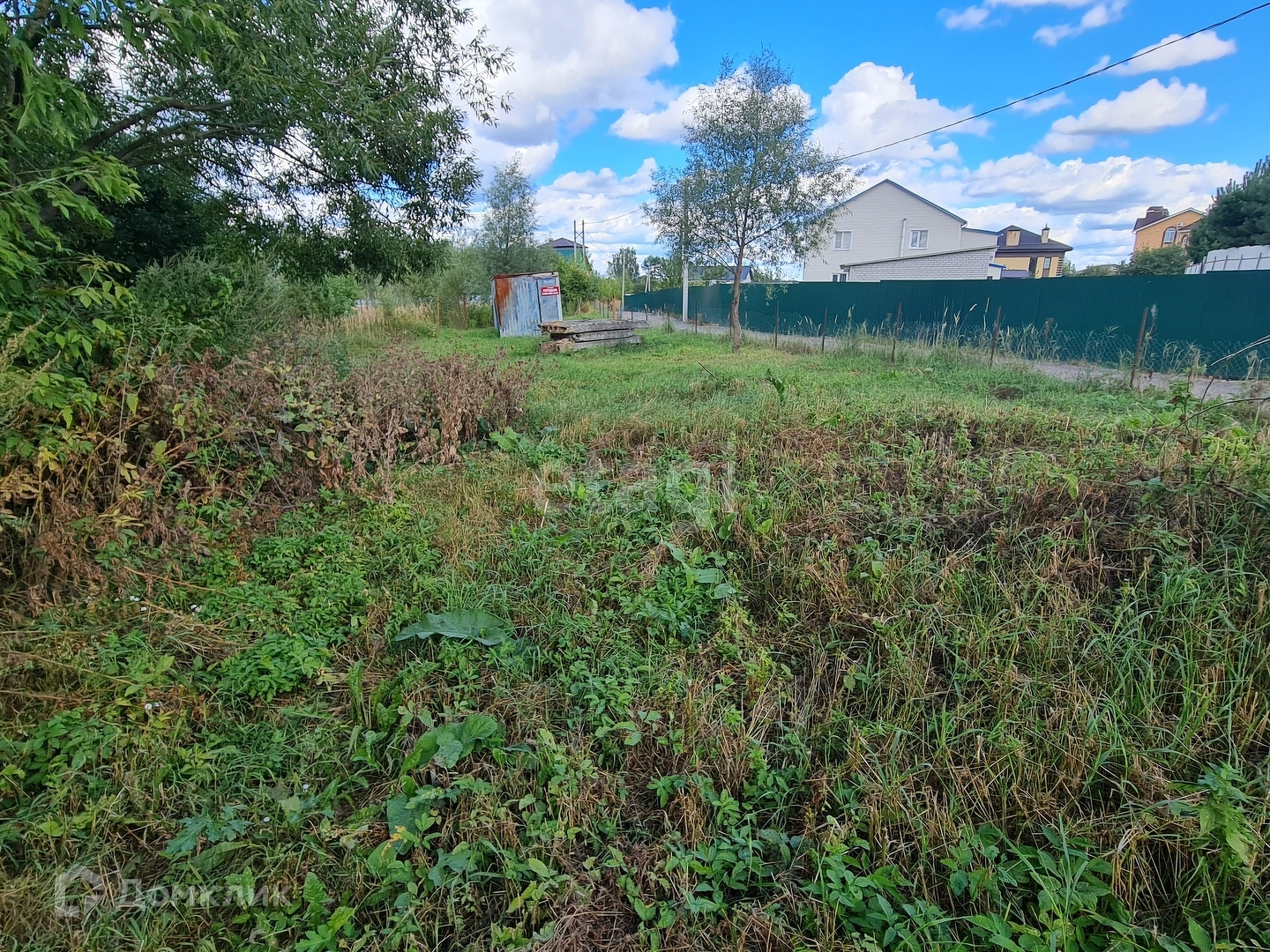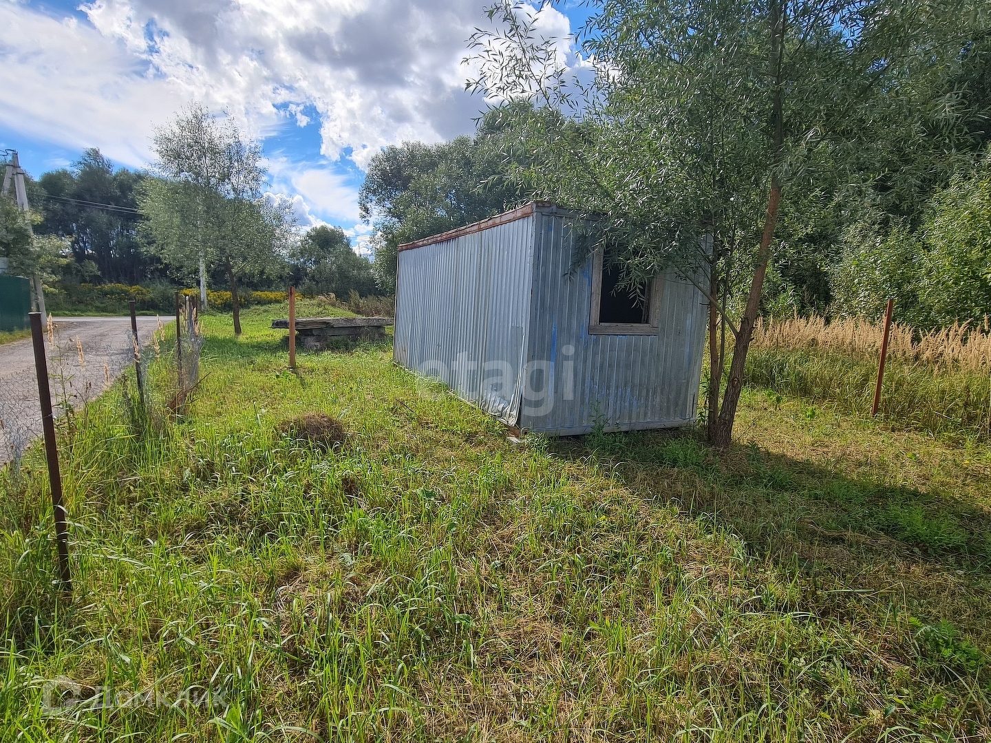 На территории участка сейчас стоит строительный вагончик (бытовка).