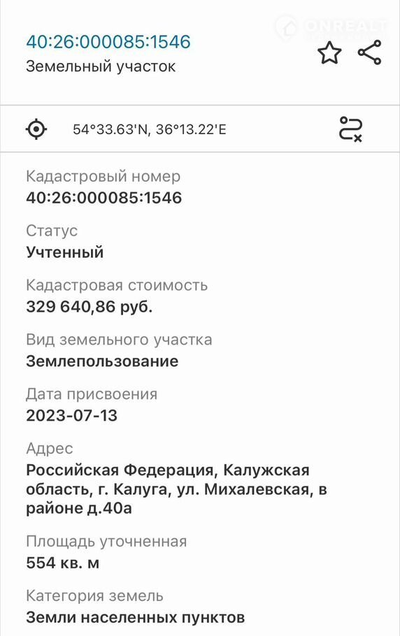 Кадастровый номер: 40:25:000240:1546