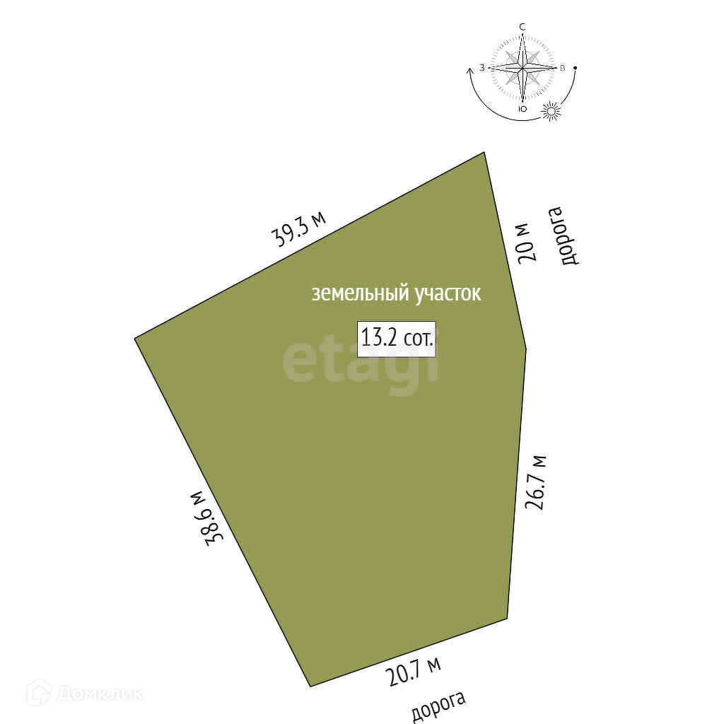 Площадь участка 13.2 сот.