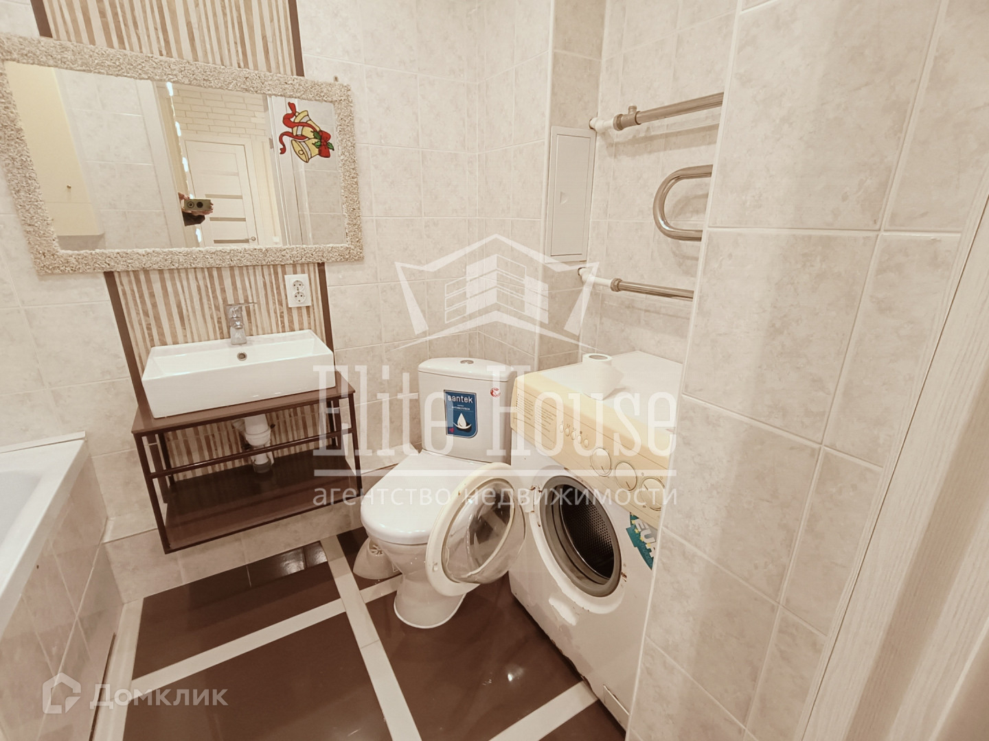 - В ванной комнате установлена стиральная машина.