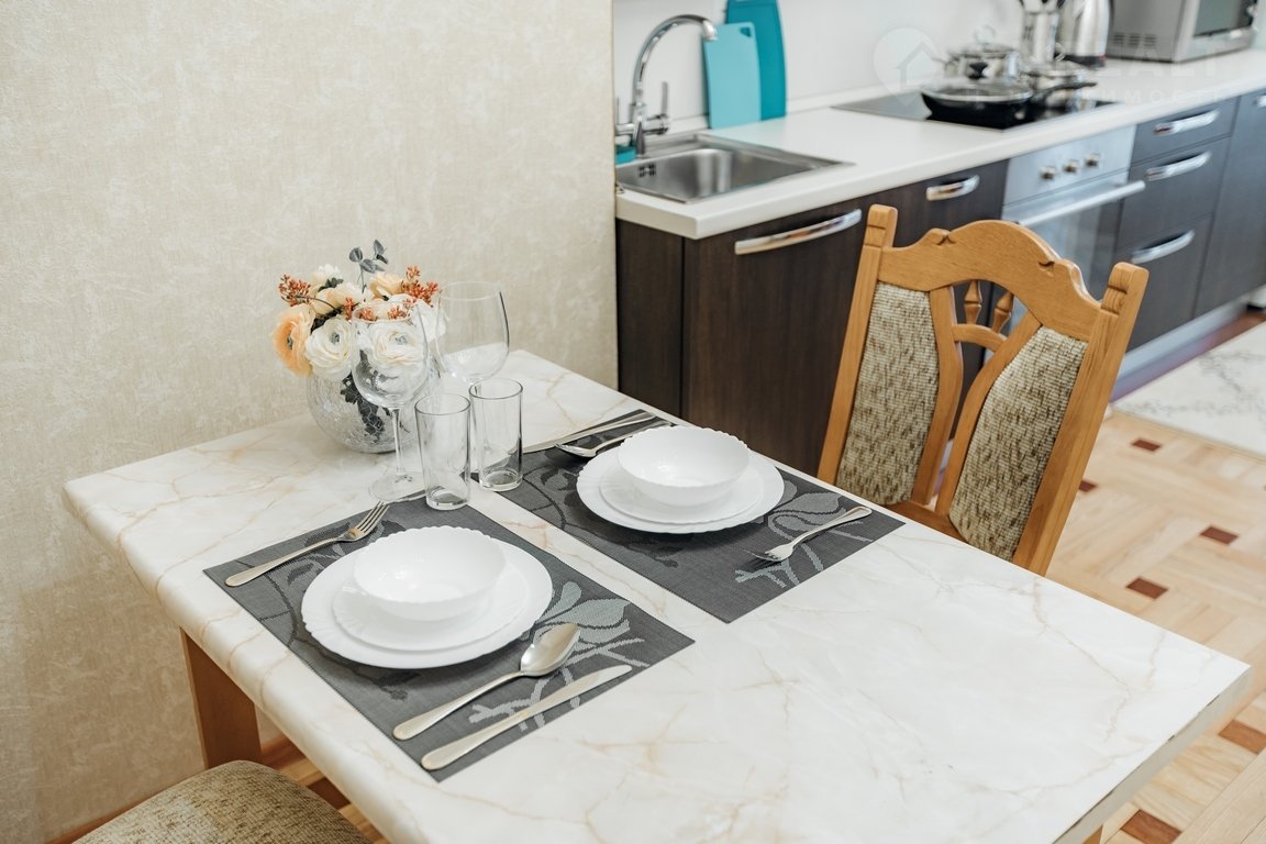 3 полноценные изолированные комнаты. Современная мебель, новая сантехника, натяжные потолки, стеклопакеты, хорошая шумоизоляция,фен, утюг, гладильная доска, сушилка для белья, стиральная машина. Есть все необходимое для проживания.