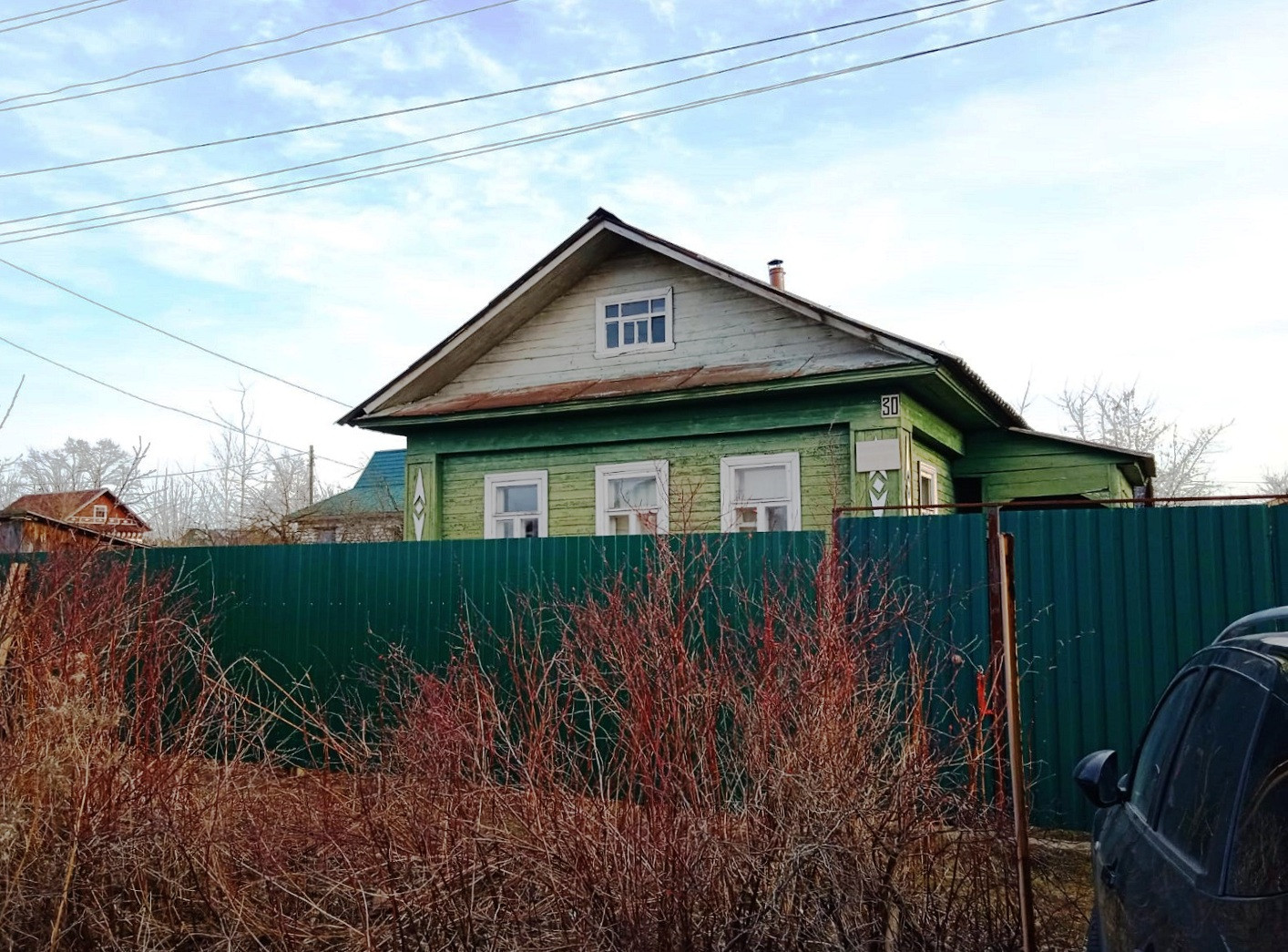 КОММУНИКАЦИИ: Электричество. Отoплeние печнoe, но есть возможность перейти на центральное газовое, так как магистральный газ подведен к дому, но не врезан. Вода из колонки на улице, но при этом центральный водопровод и канализация по границе участка, так что есть перспектива их подключения к дому. Таким образом, можно создать все условия, как в городской квартире. Туалет внутри дома.