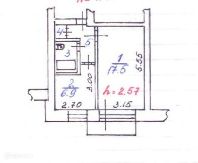 Жилая площадь 17.5 м2