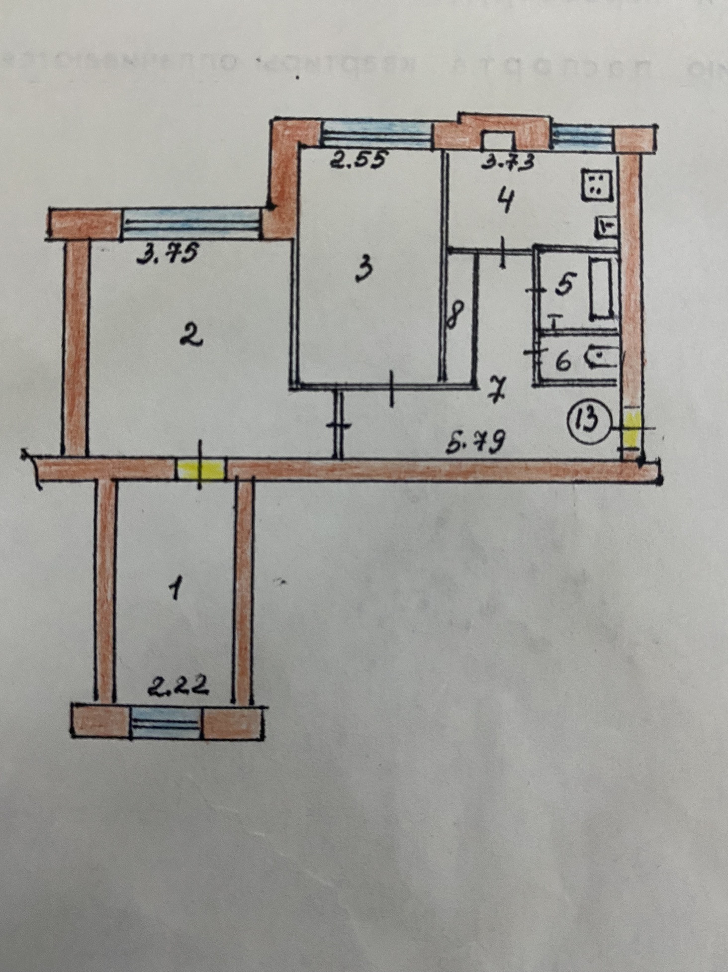 Жилая площадь 38.4 м2