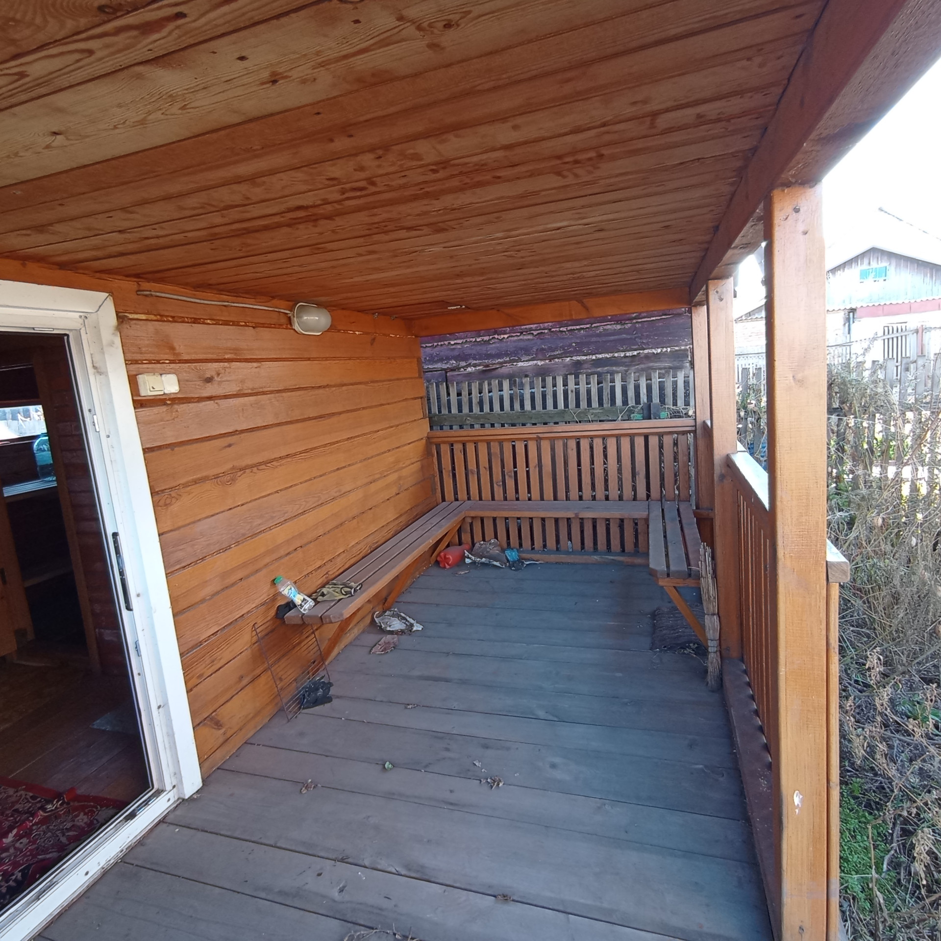 Продаётся дом НА ФИНИШНОМ ЭТАПЕ постройки 8х12 м. Дом из бруса 15х15, пол и потолок из плахи, окна пластиковые, крыша металлопрофиль,  есть возможность сделать 2й этаж, залит фундамент для гаража и веранды. Есть погреб. Подключены всё коммуникации: свет, вода, сделана канализация (4,5 куба). На участке построена баня с террасой. Окна и двери пластиковые. В бане предусмотрен отдельный слив, можно подключить воду. Есть уличный туалет. Участок 5,5 соток (Земля в аренде. Платёж около 600р. в год. При желании можно выкупить). Участок огорожен, фасадная сторона из металлопрофиля, 2ое ворот. Из саженцев: малина, яблоня, слива, вишня. Очень плодородная земля. Отличные соседи. Возможен торг.
